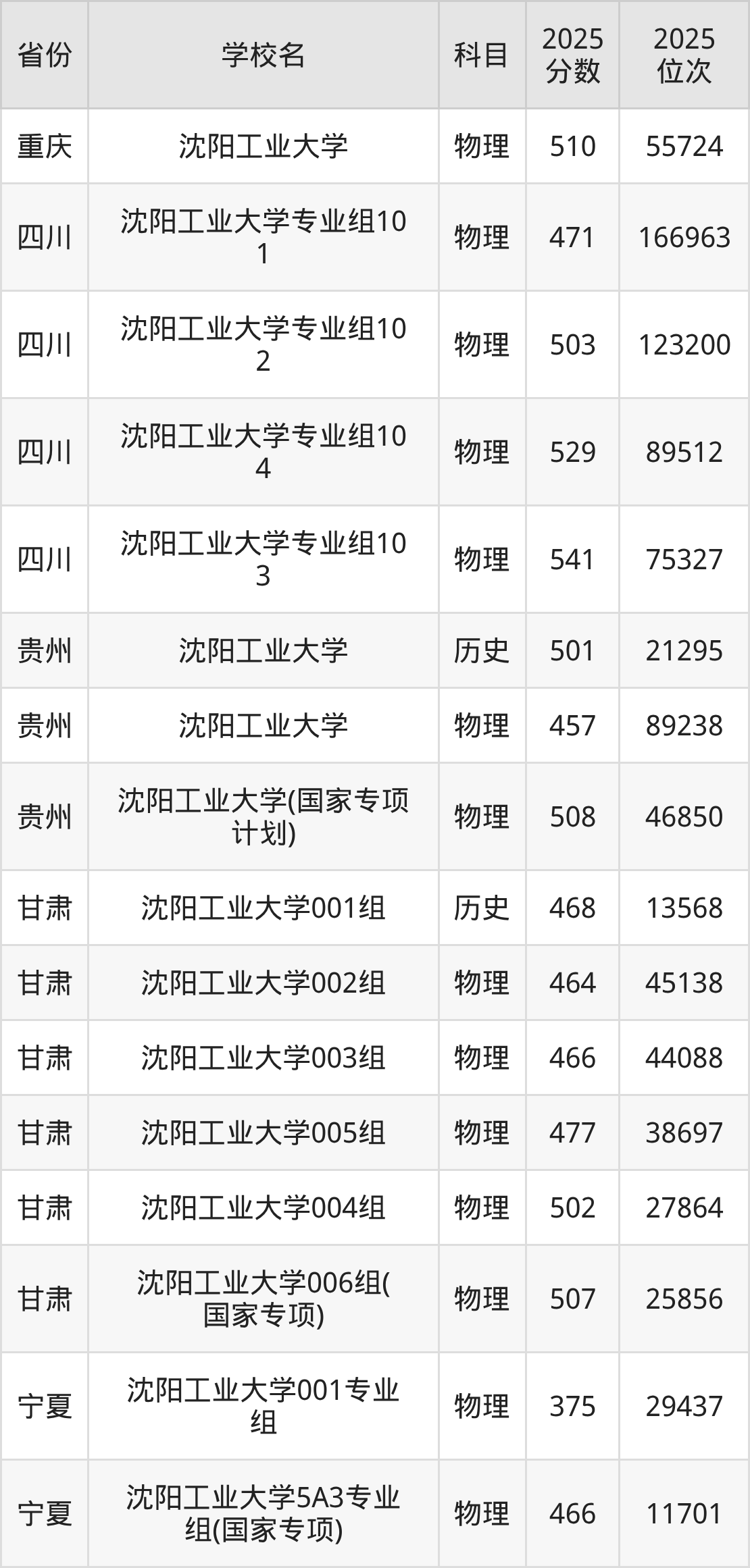| 沈阳工业大学 | 物理 | 470 | 71586 |