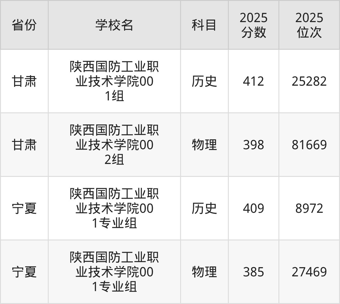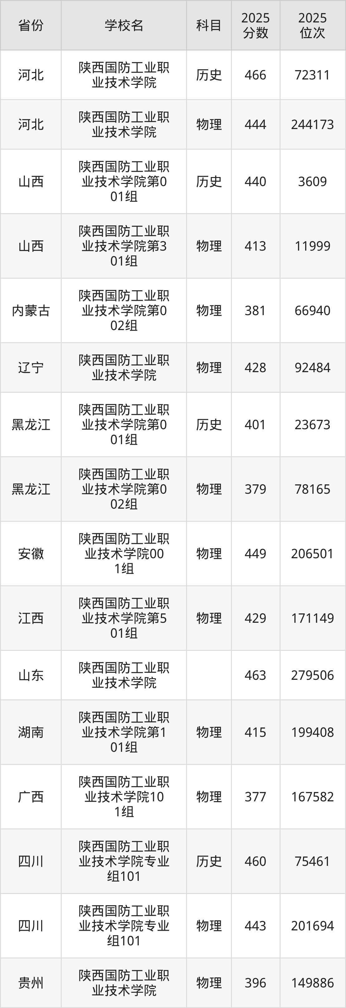 2026年陕西国防工业职业技术学院录取分数线预计在410分及以上,在各省录取最低分存在一定差异,如:2025年陕西国防工业职业技术学院在宁夏录取最低历史类409分、物理类385分,在河北录取最低历史类466分、物理类444分,在山西录取最低历史类440分、物理类413分。