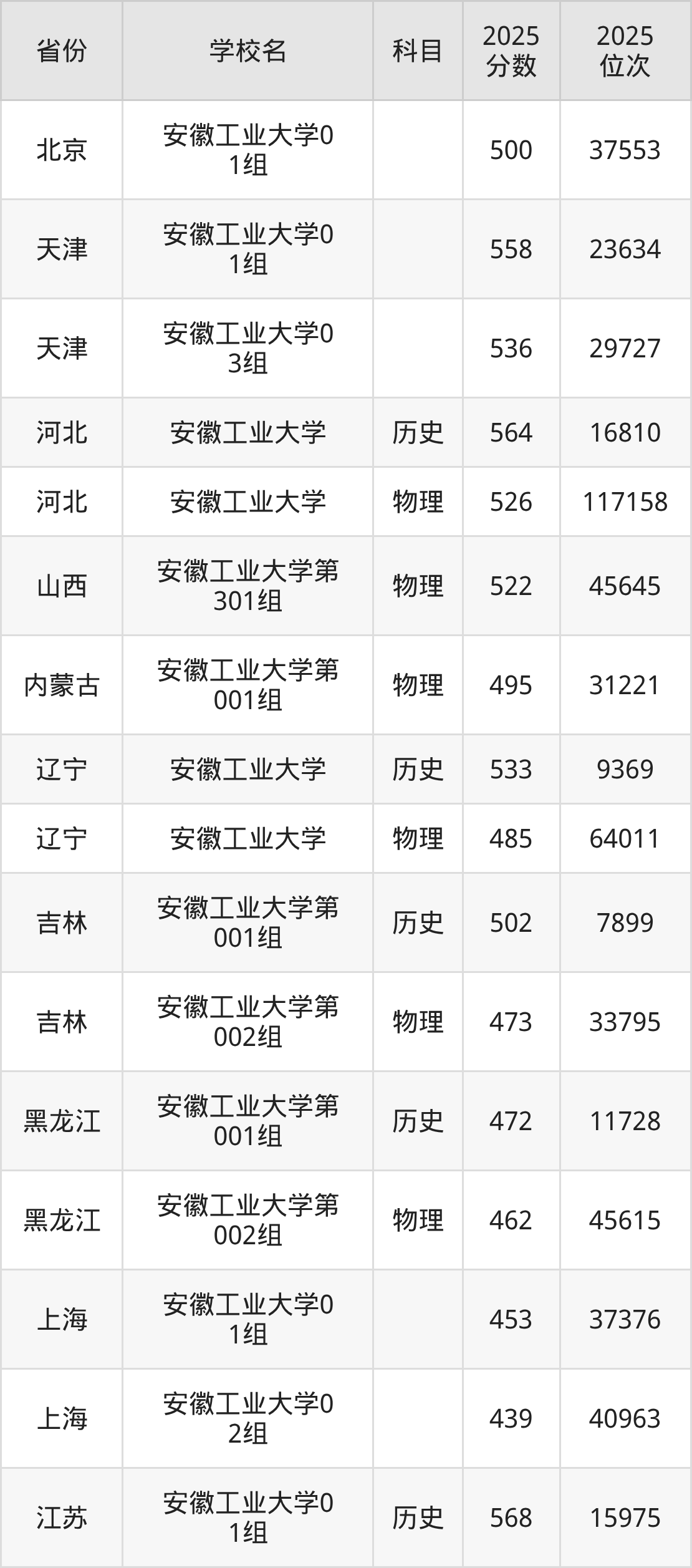 2025年安徽工业大学历史类最低分543分(16100名)、物理类最低分542分(79489名)。
