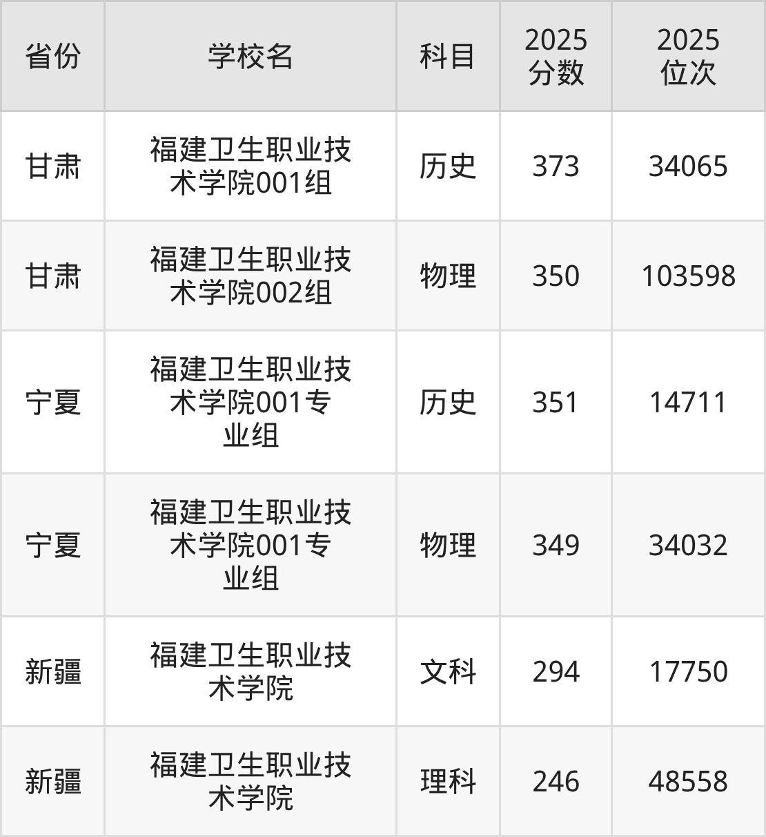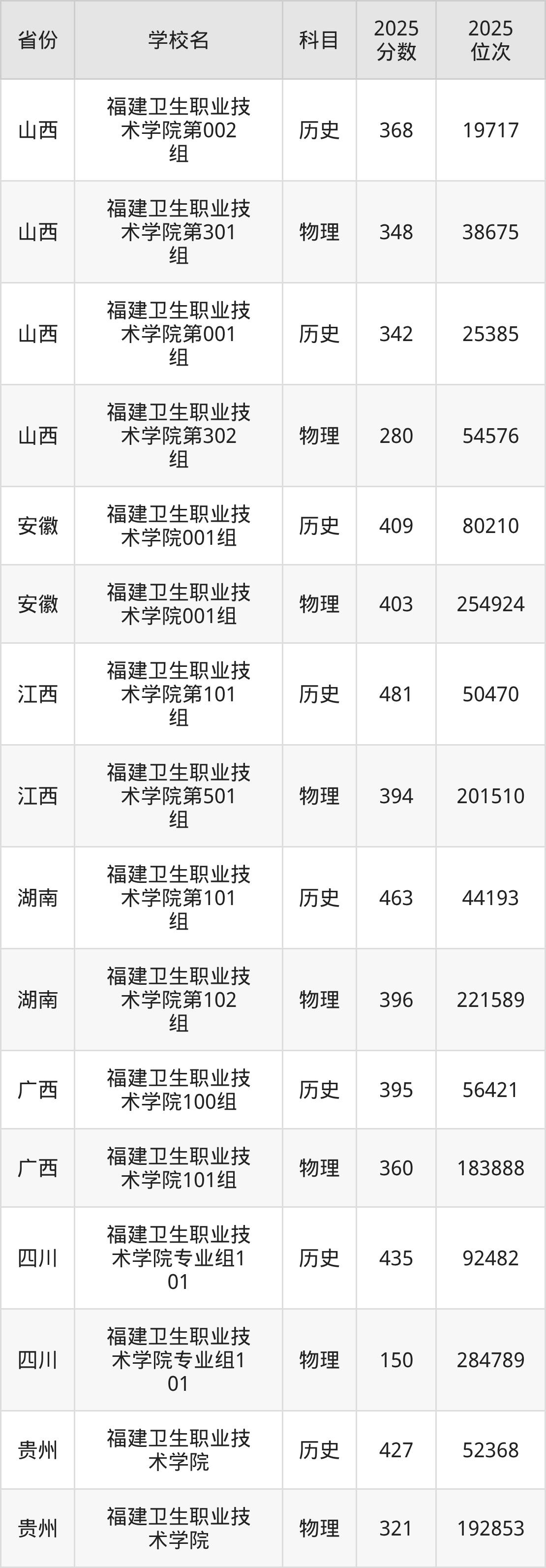 下面是福建卫生职业技术学院2025年录取分数线各省汇总,一起来了解下吧。