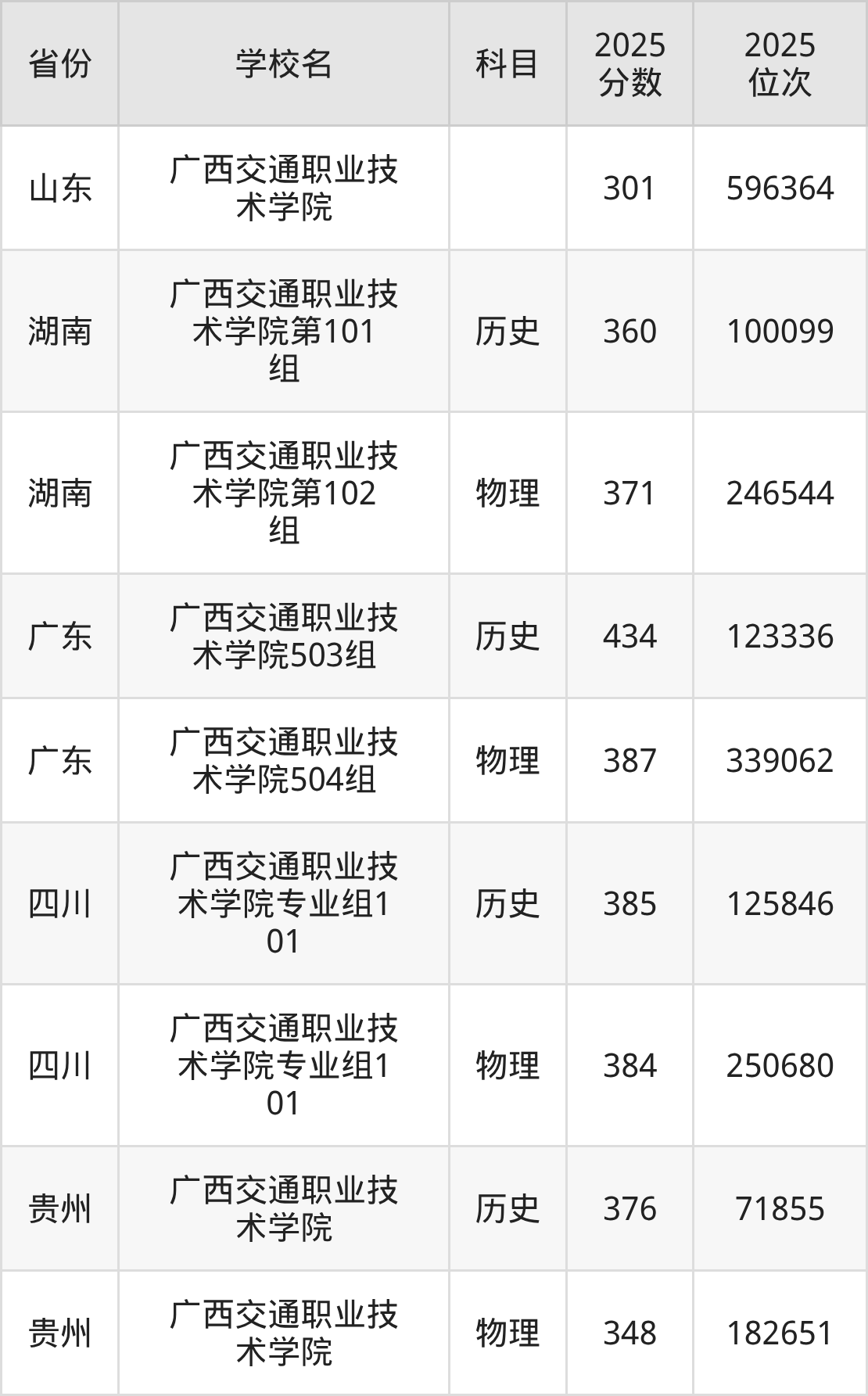 下面是广西交通职业技术学院2025年录取分数线各省汇总,一起来了解下吧。