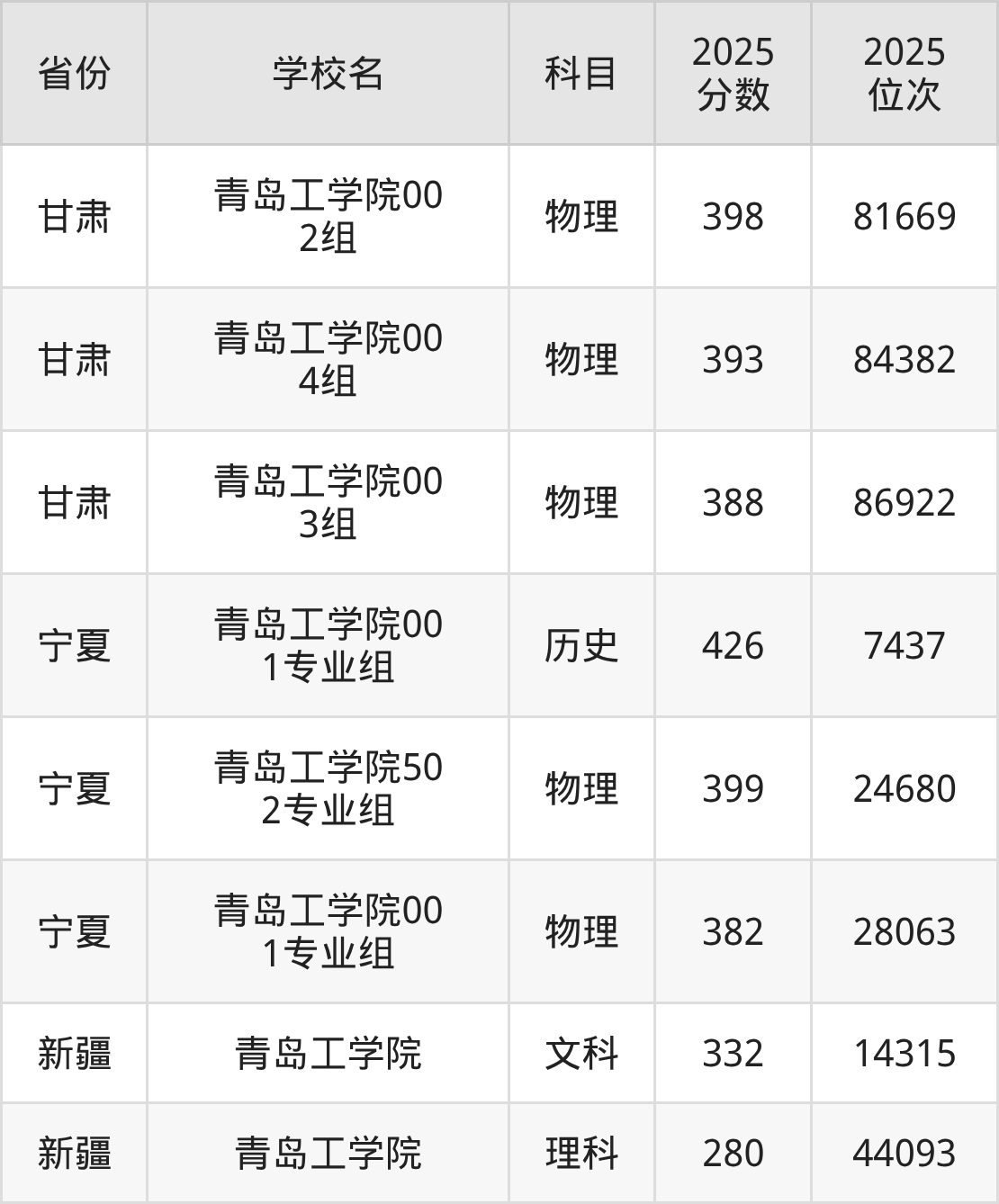 | 青岛工学院 | 441 | 333137 |