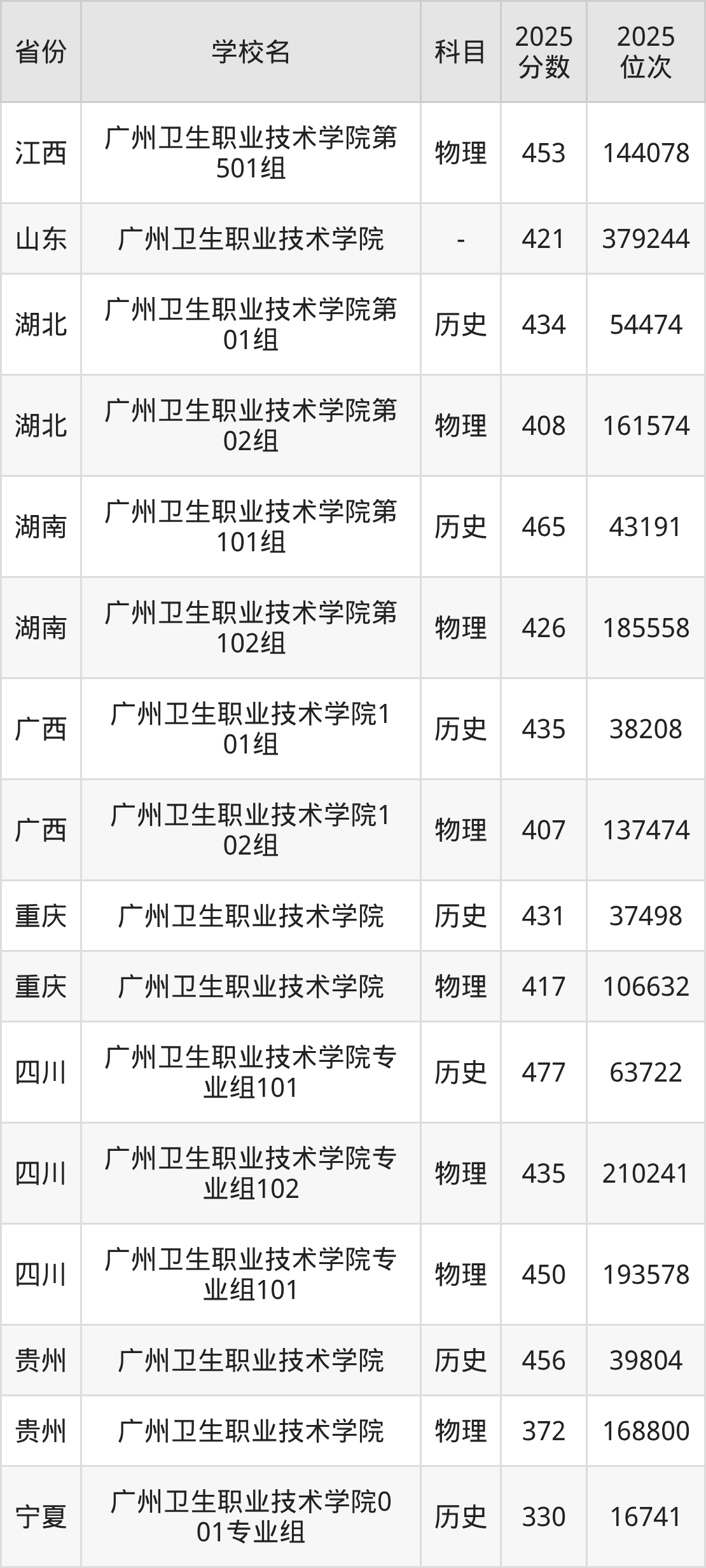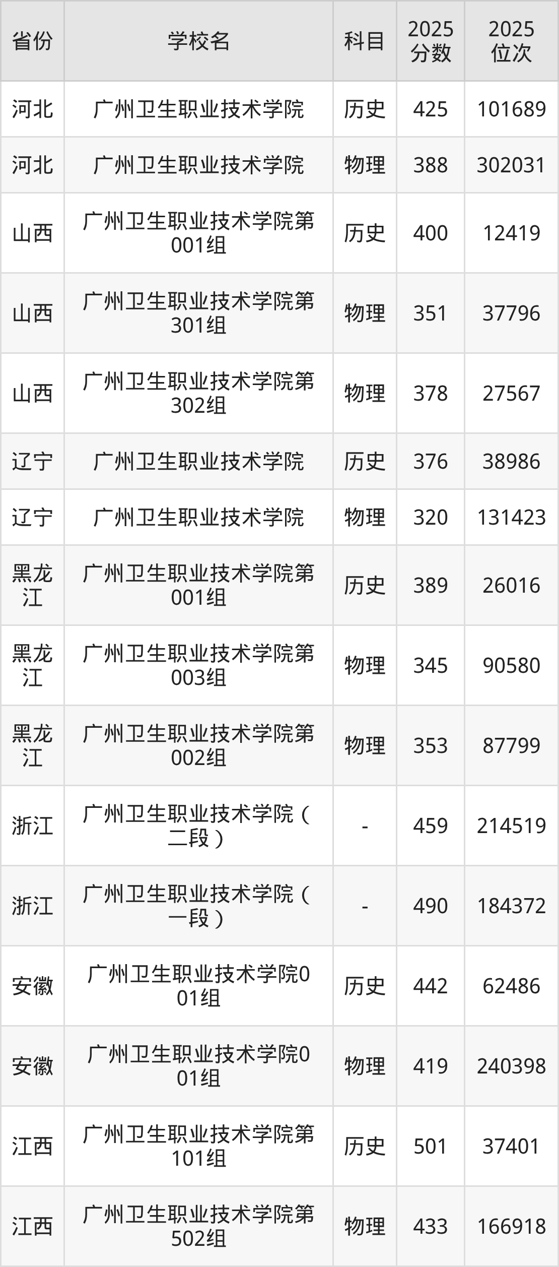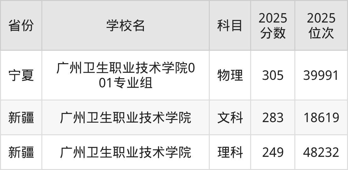 下面是广州卫生职业技术学院2025年录取分数线各省汇总,一起来了解下吧。
