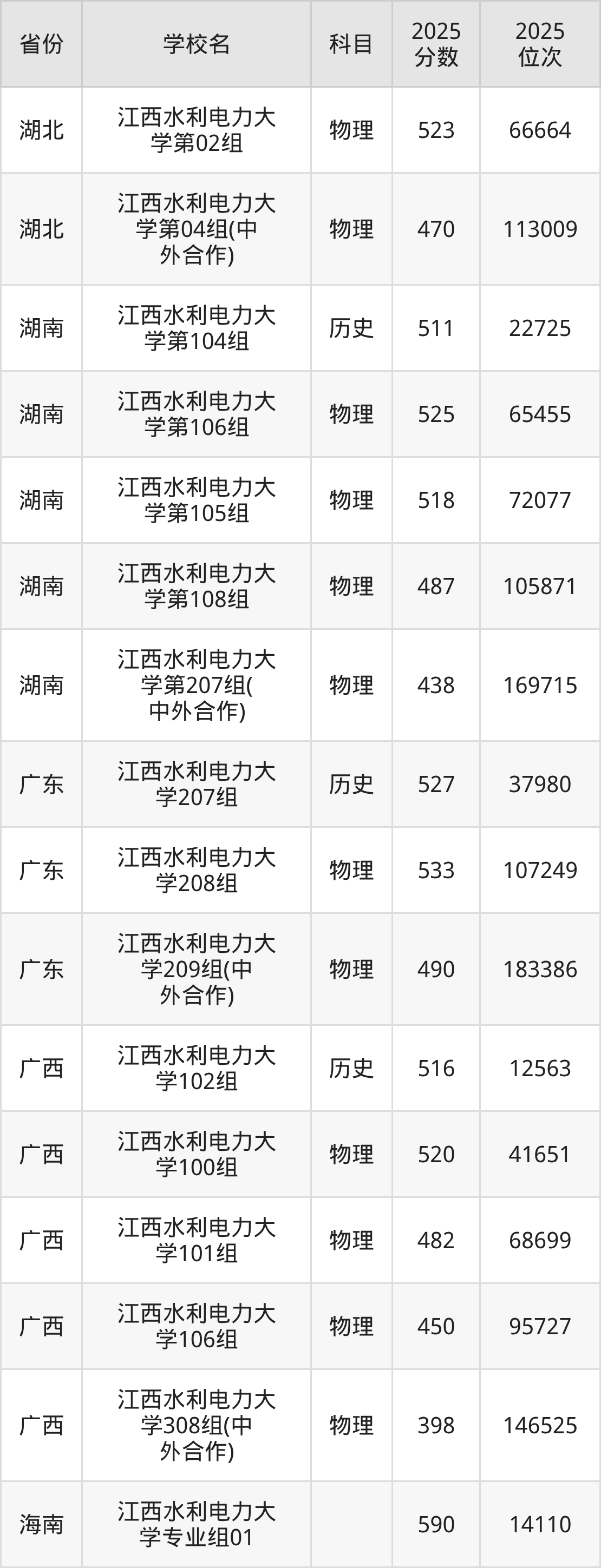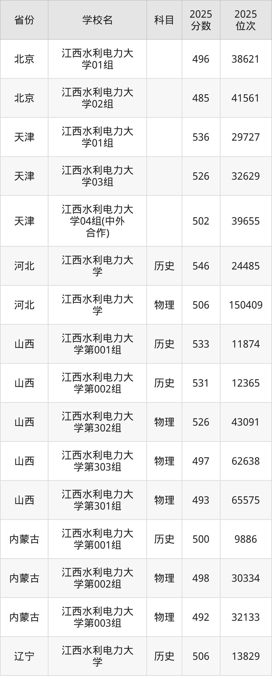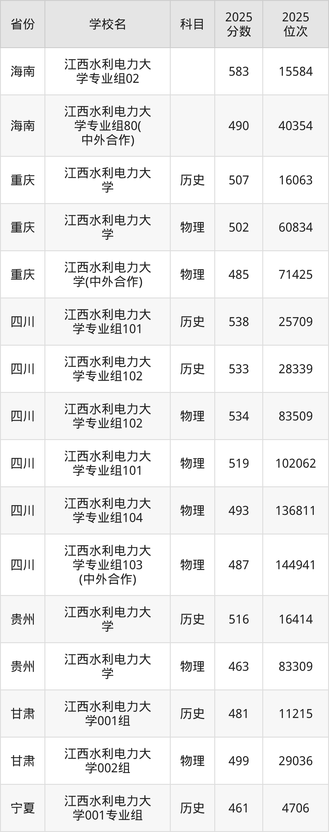 下面是江西水利电力大学2025年录取分数线各省汇总,一起来了解下吧。