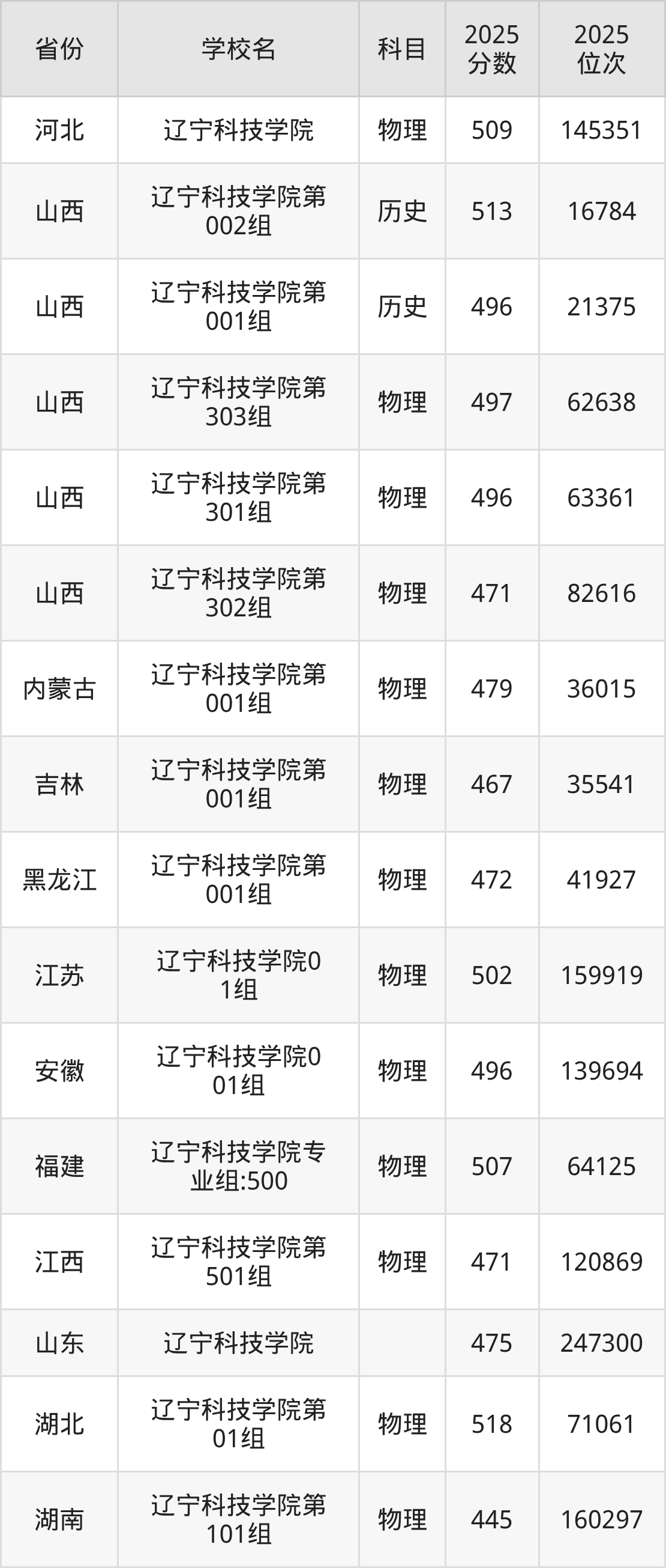 2025年辽宁科技学院历史类最低分478分(18893名)、物理类最低分459分(77204名)。