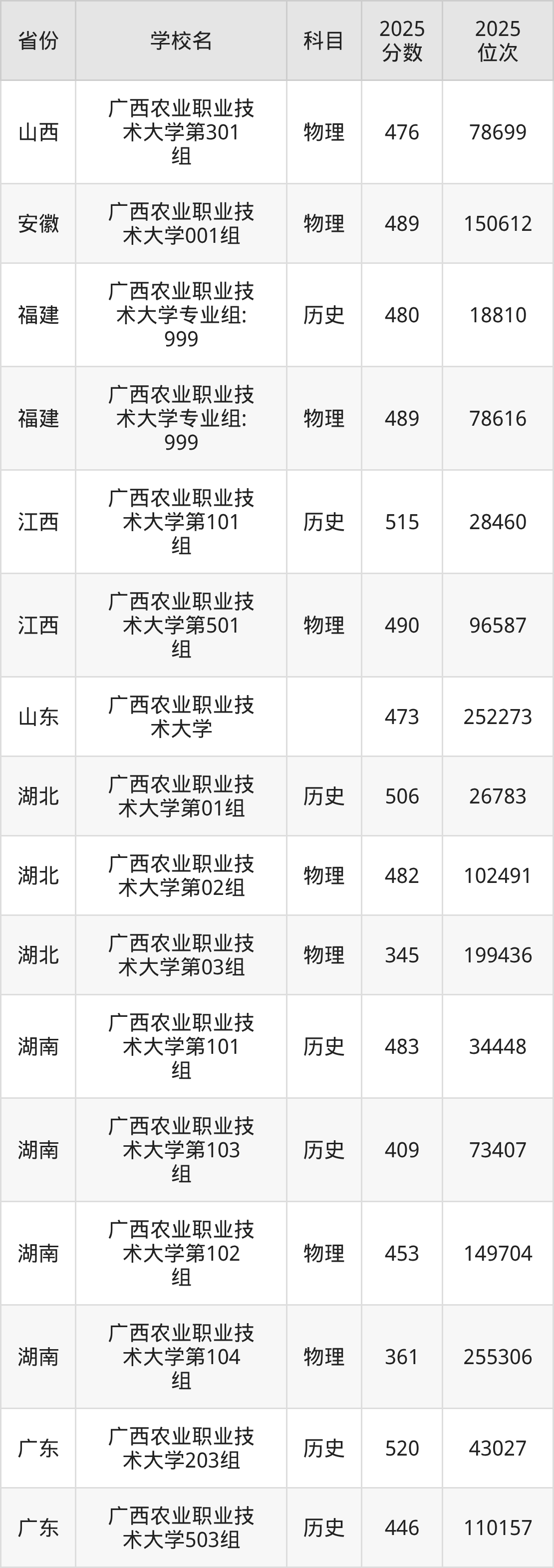 下面是广西农业职业技术大学2025年录取分数线各省汇总,一起来了解下吧。