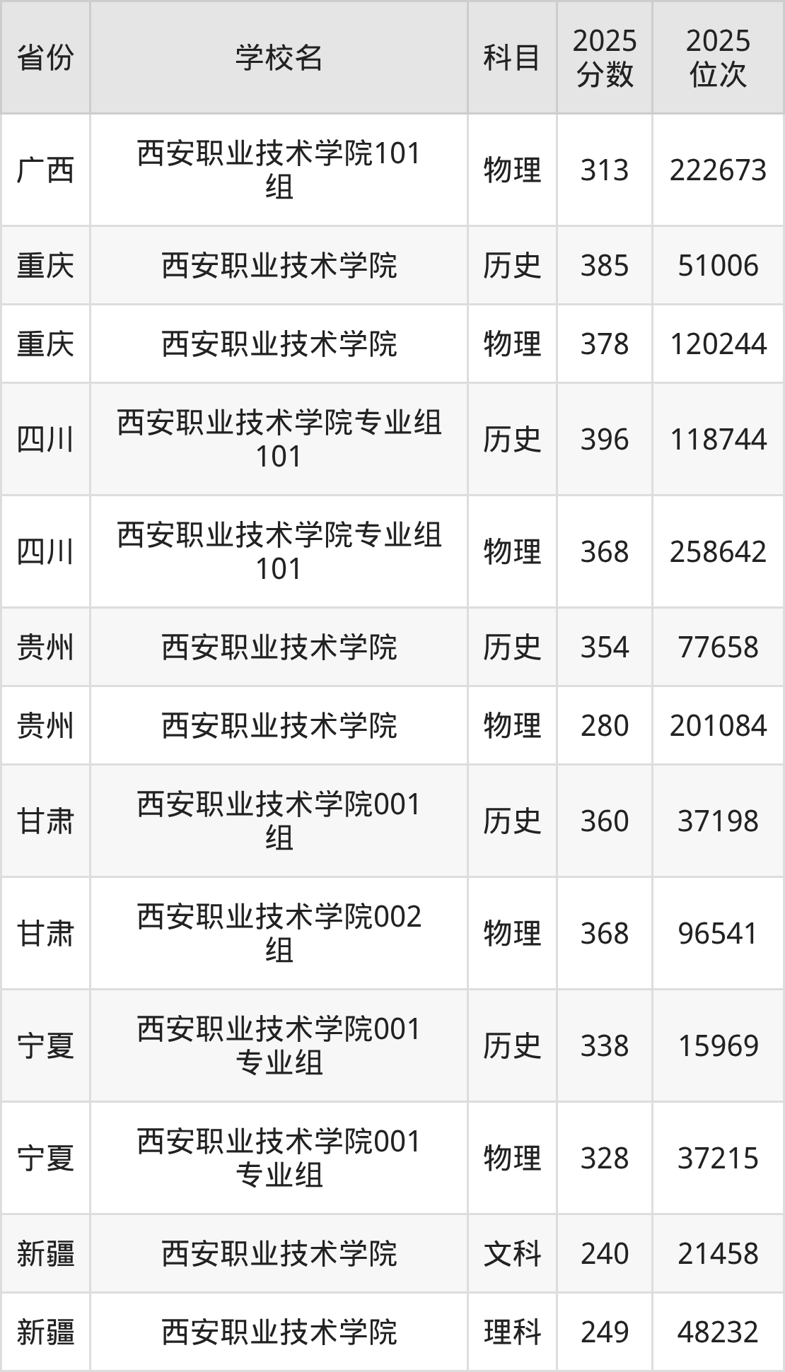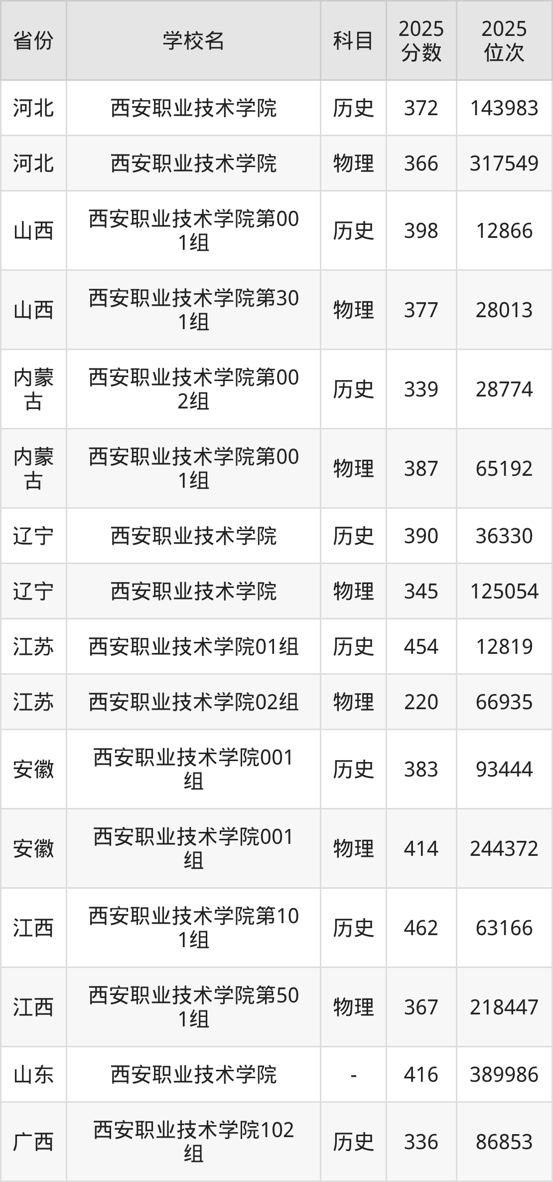 2025年西安职业技术学院历史类最低分372分(143983名)、物理类最低分366分(317549名)。