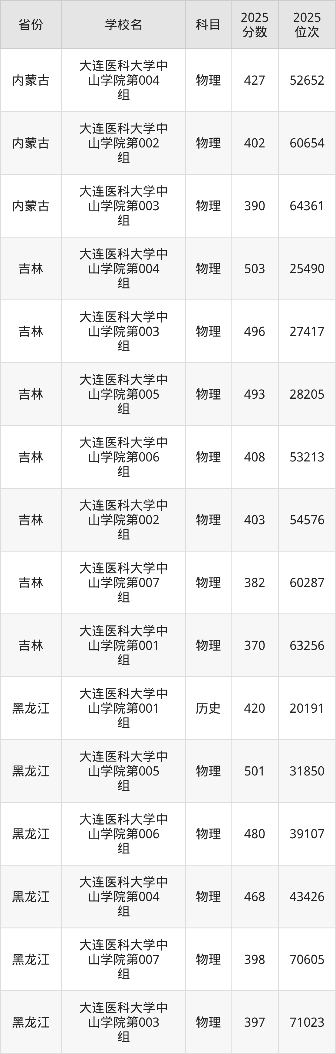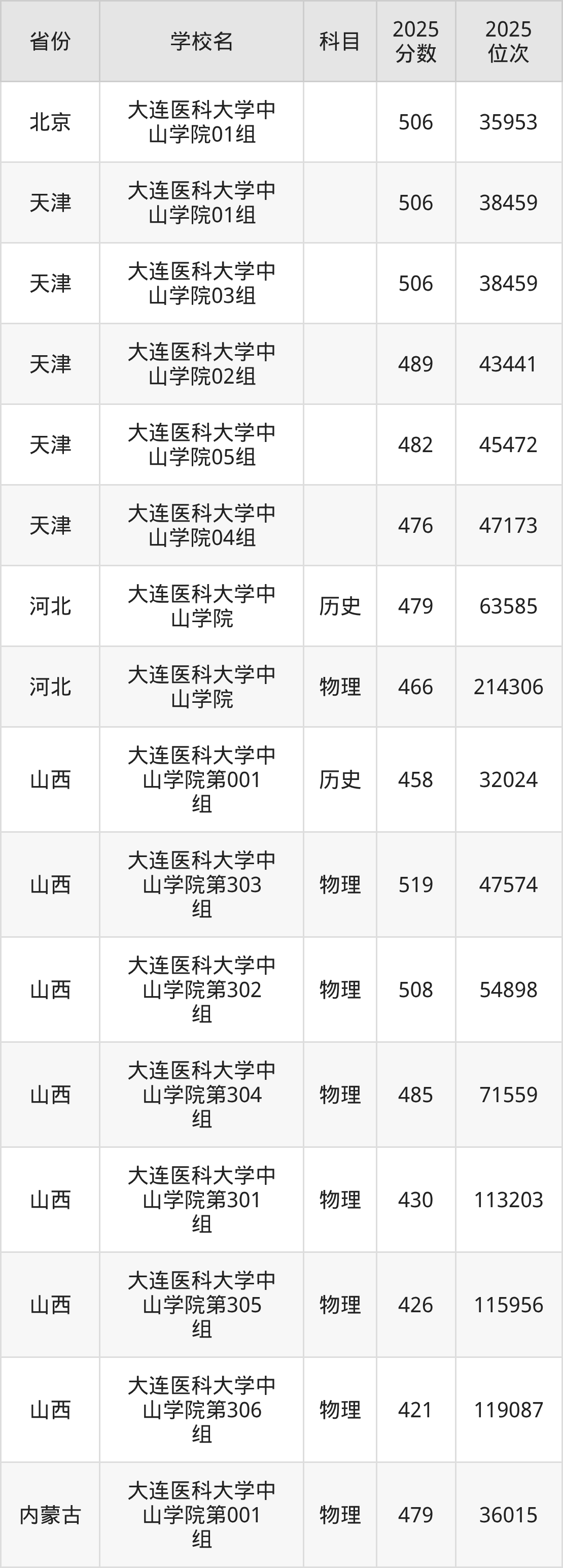 下面是大连医科大学中山学院2025年录取分数线各省汇总,一起来了解下吧。