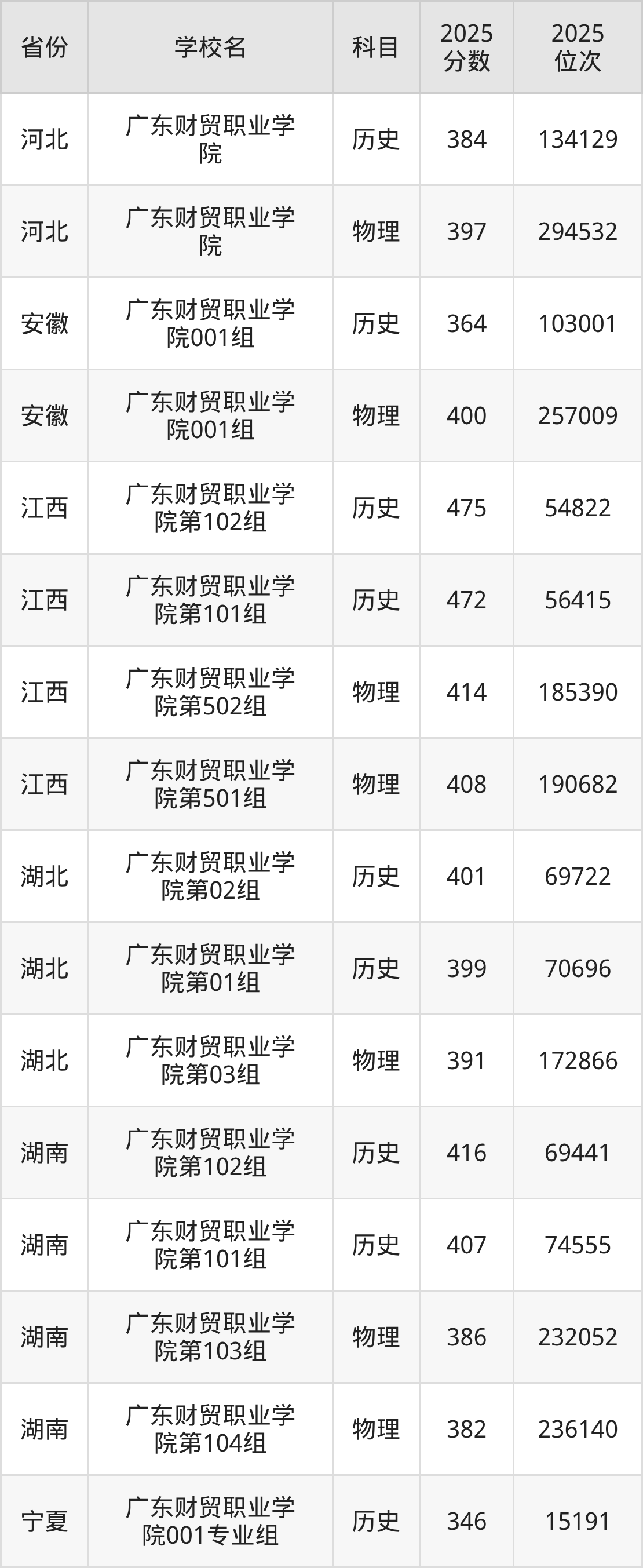 下面是广东财贸职业学院2025年录取分数线各省汇总,一起来了解下吧。