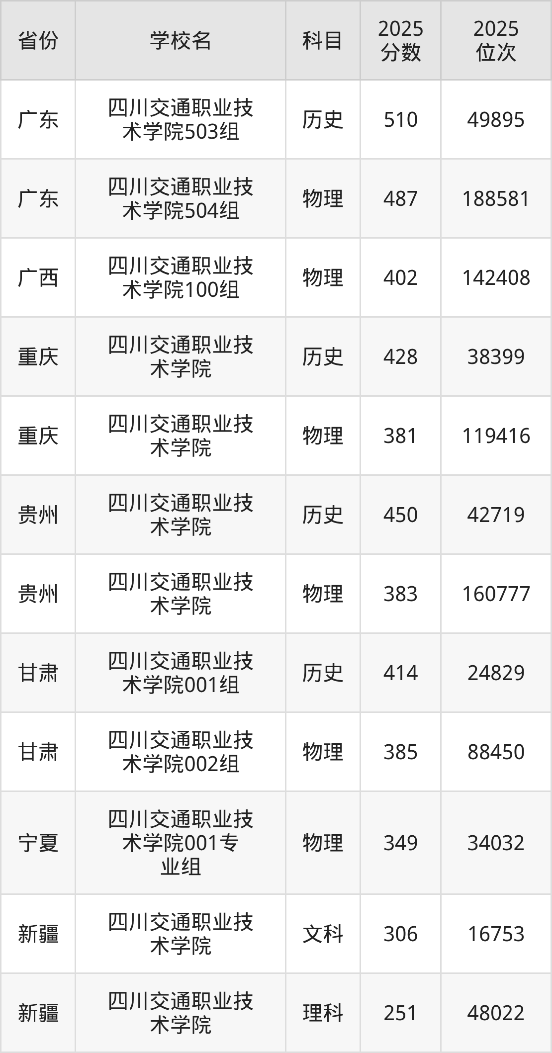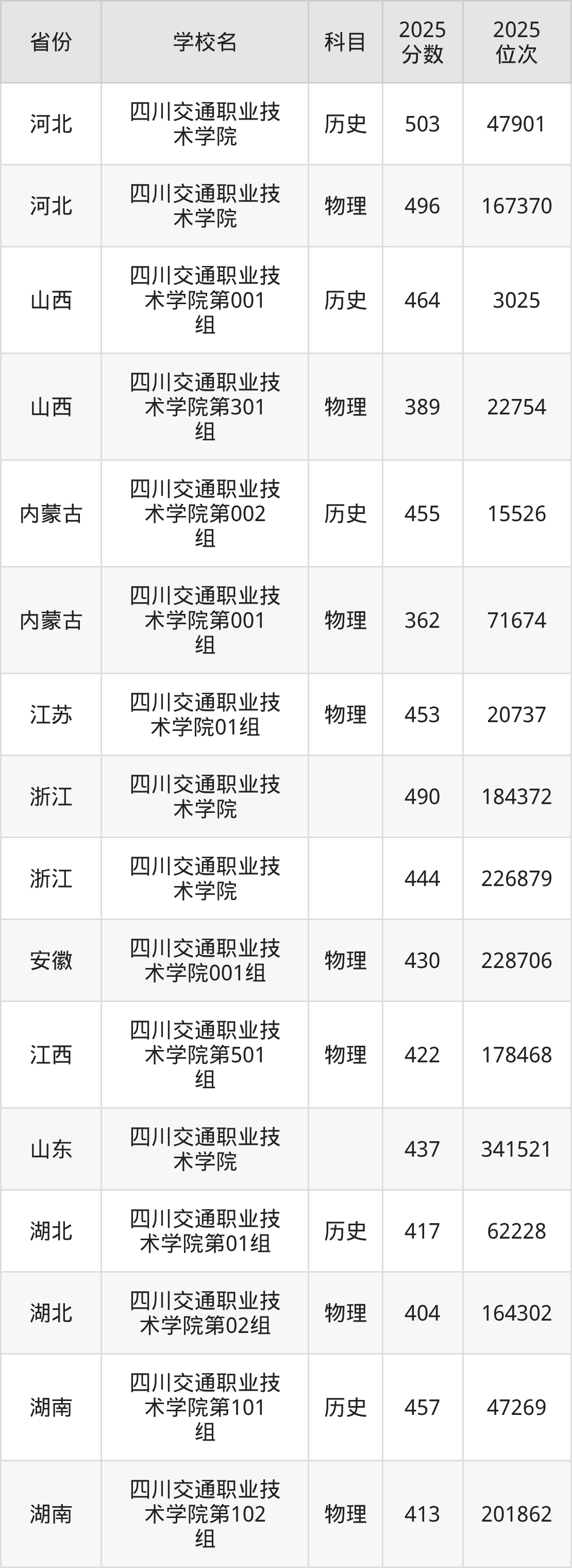 下面是四川交通职业技术学院2025年录取分数线各省汇总,一起来了解下吧。