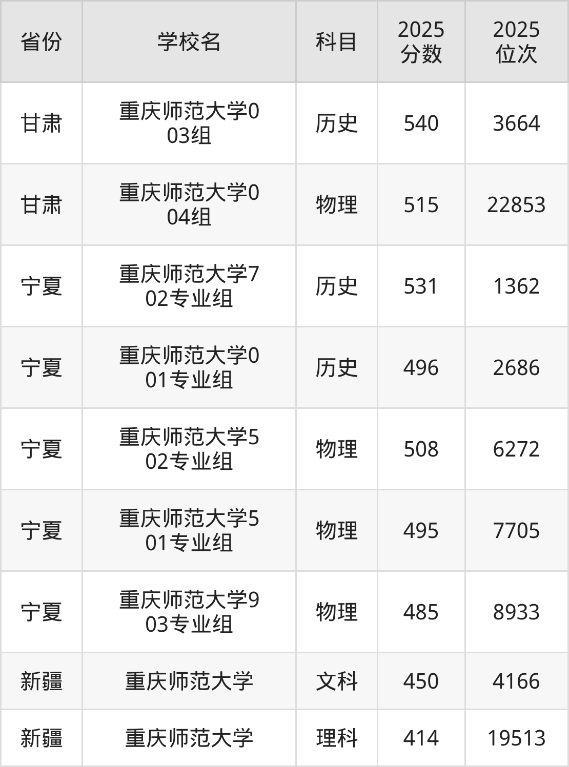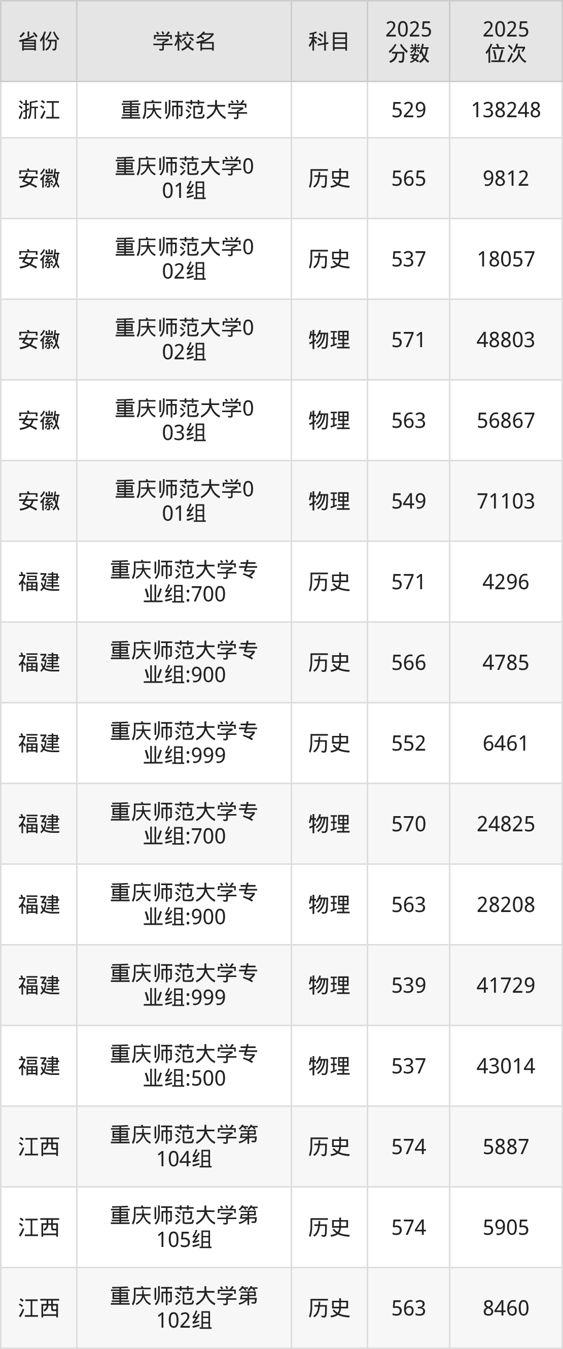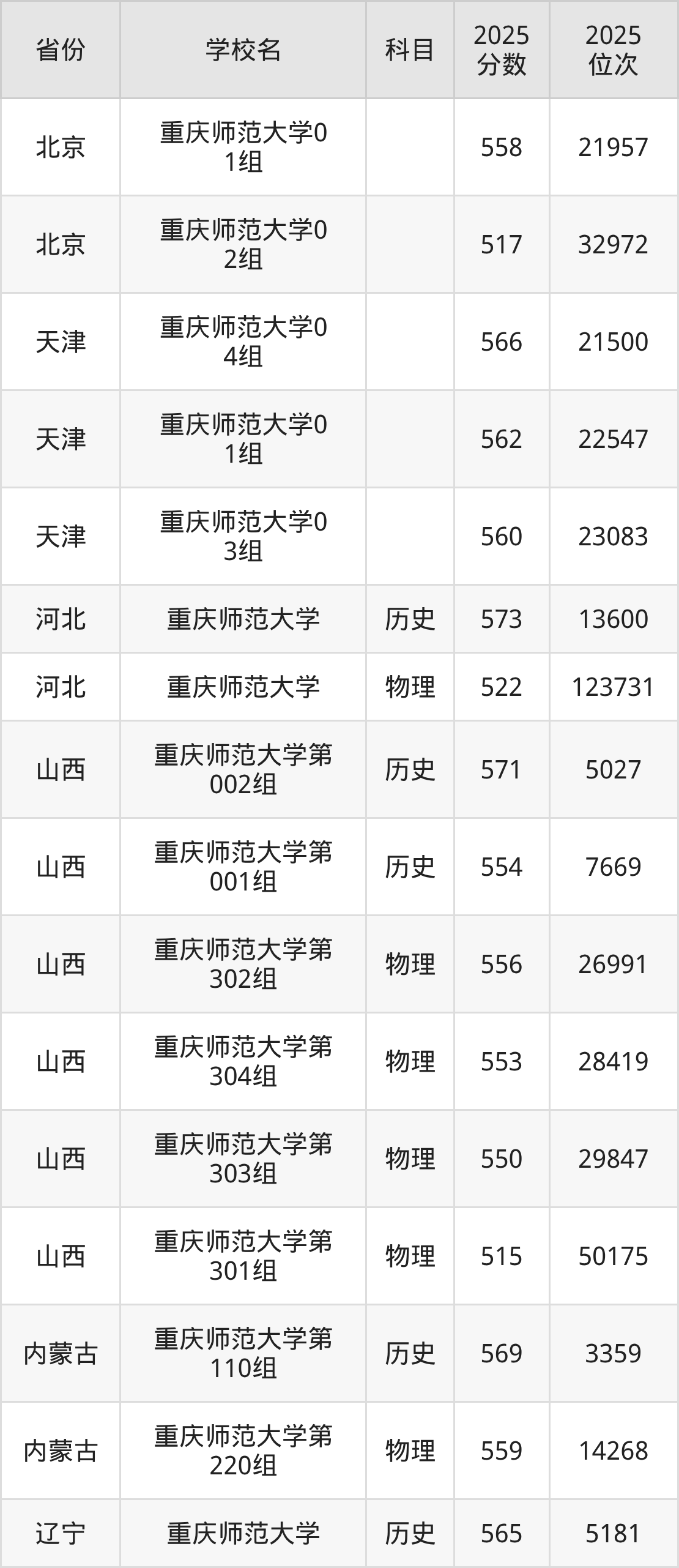 下面是重庆师范大学2025年录取分数线各省汇总,一起来了解下吧。