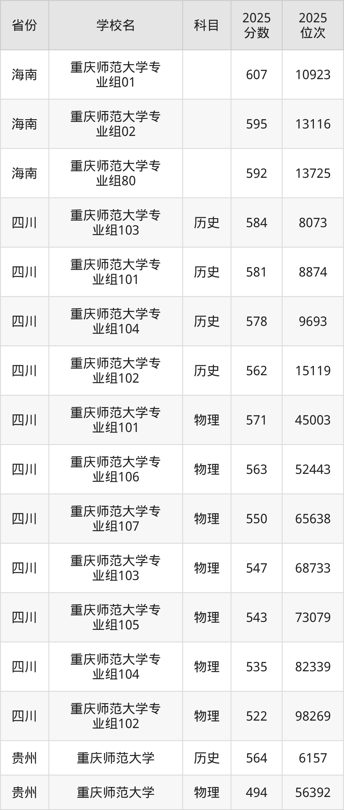 | 重庆师范大学( 地方专项) | 历史 | 550 | 7083 |