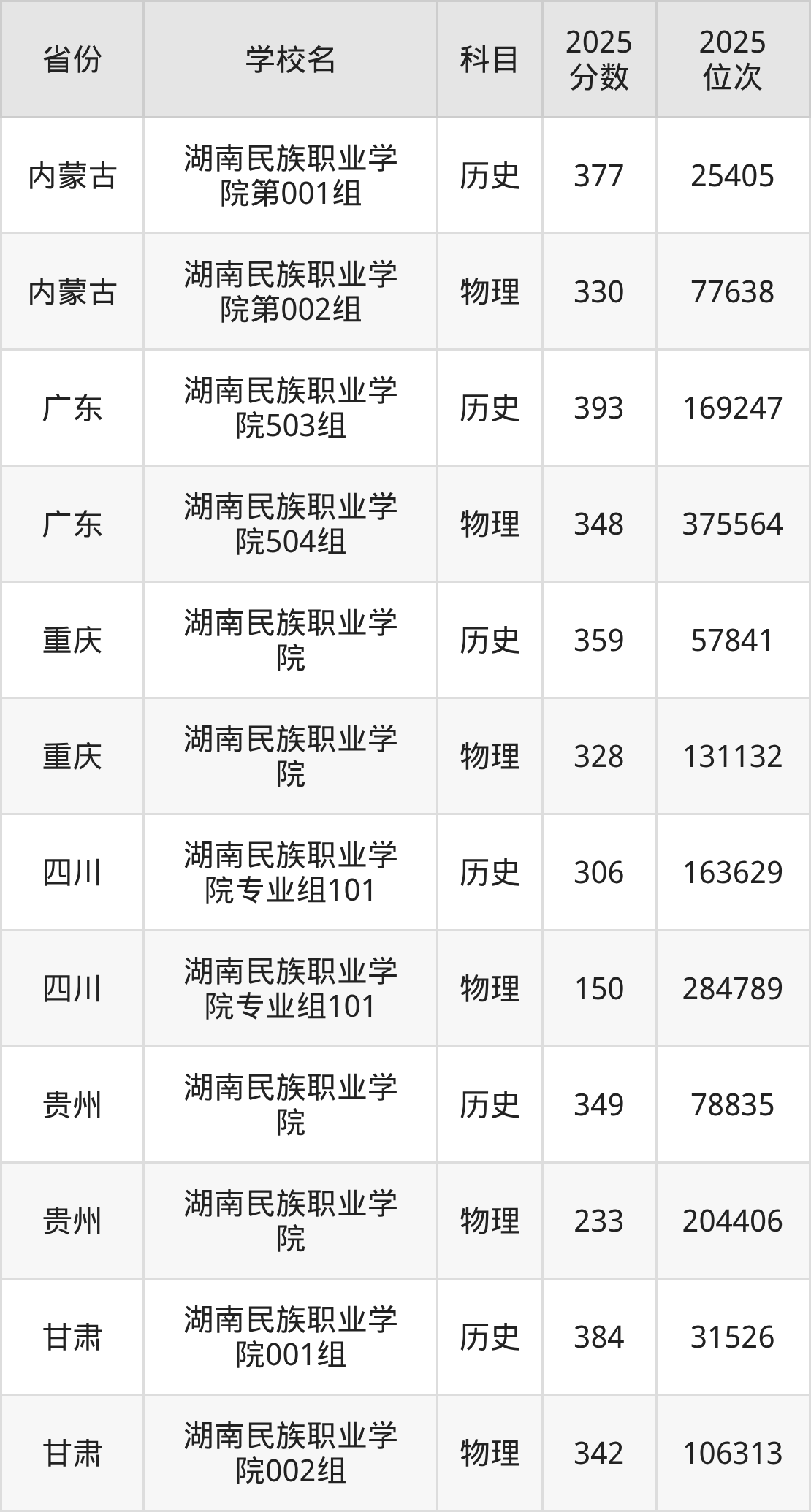 下面是湖南民族职业学院2025年录取分数线各省汇总,一起来了解下吧。