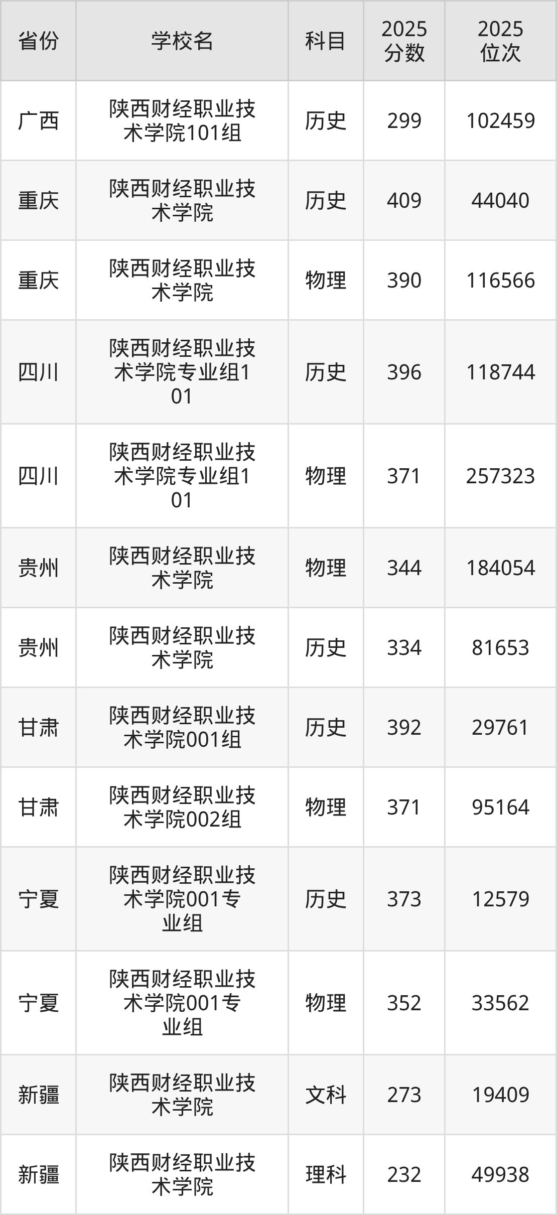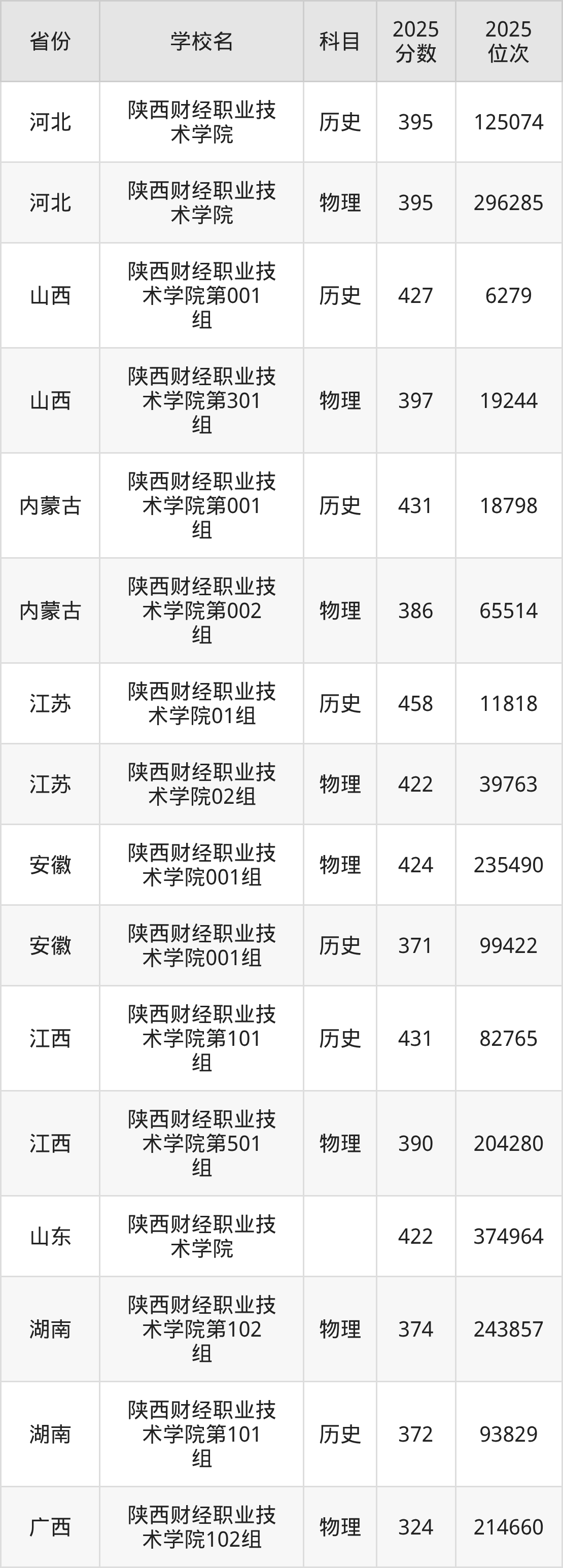 下面是陕西财经职业技术学院2025年录取分数线各省汇总,一起来了解下吧。