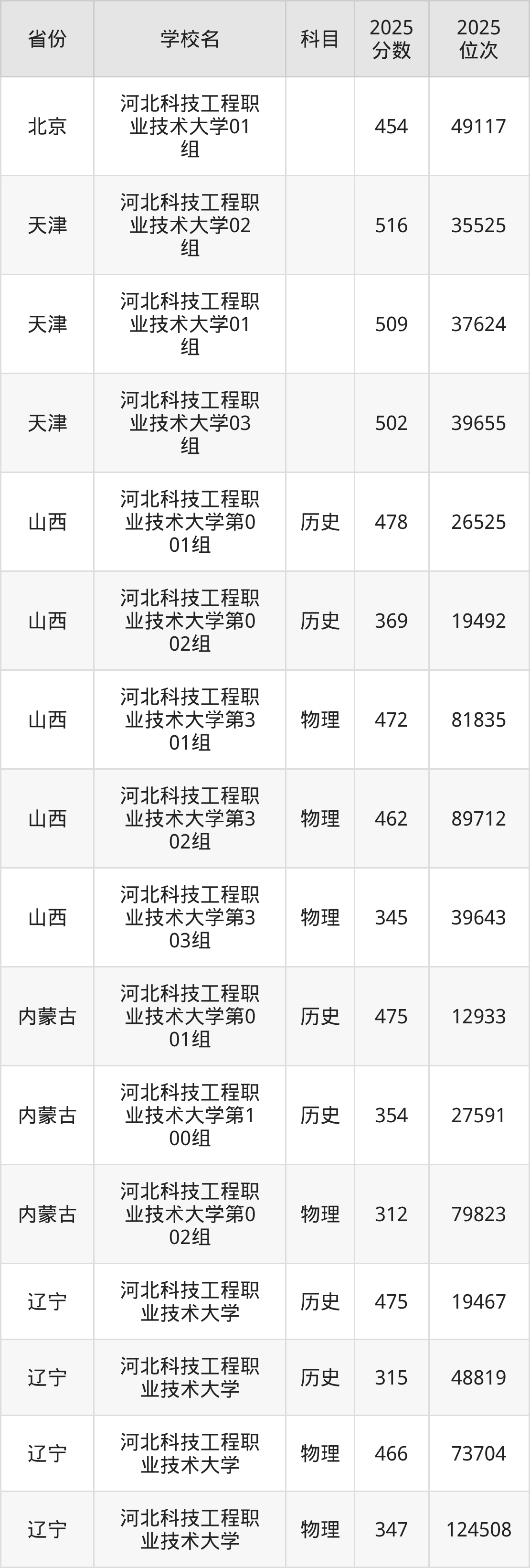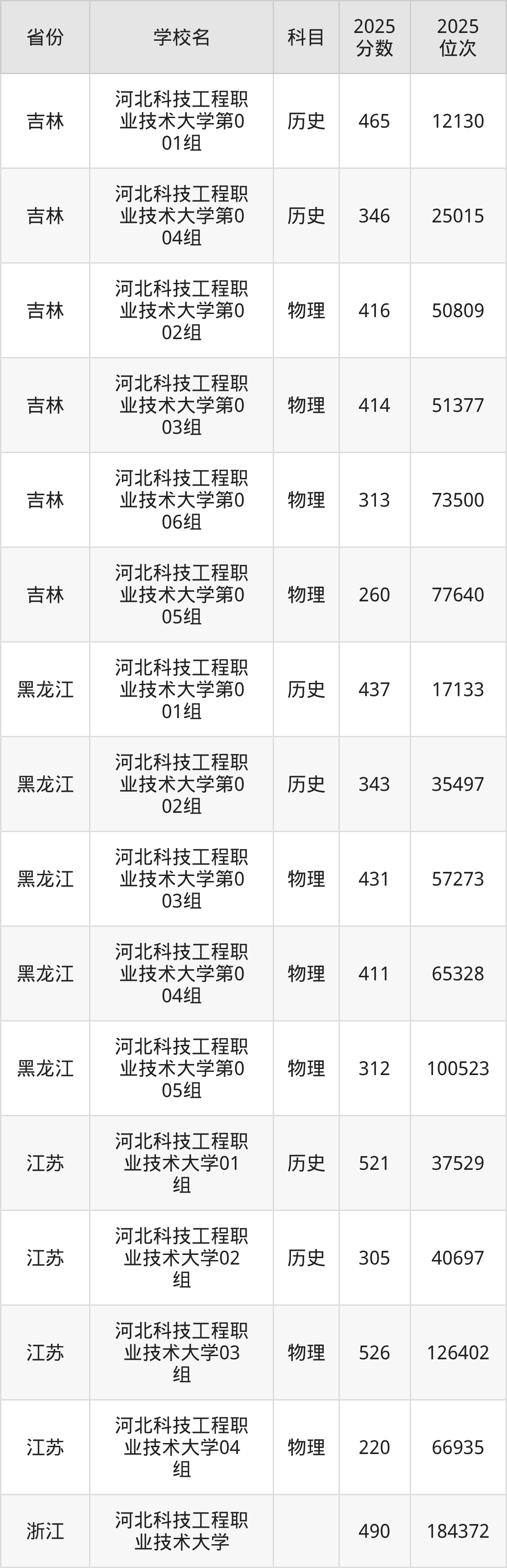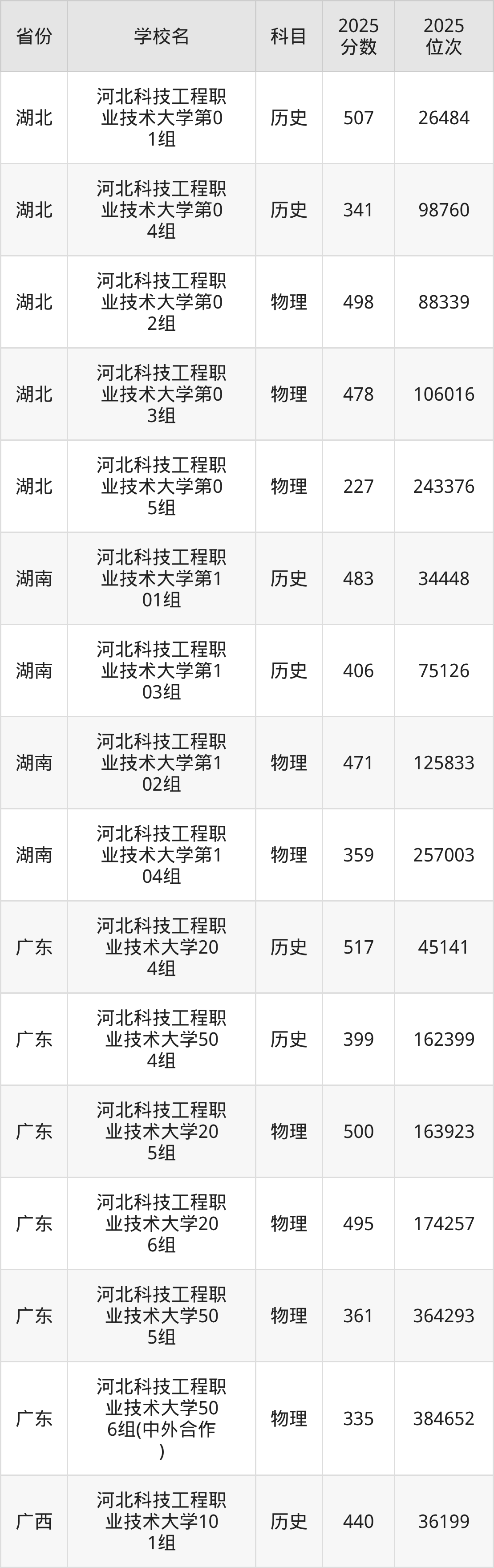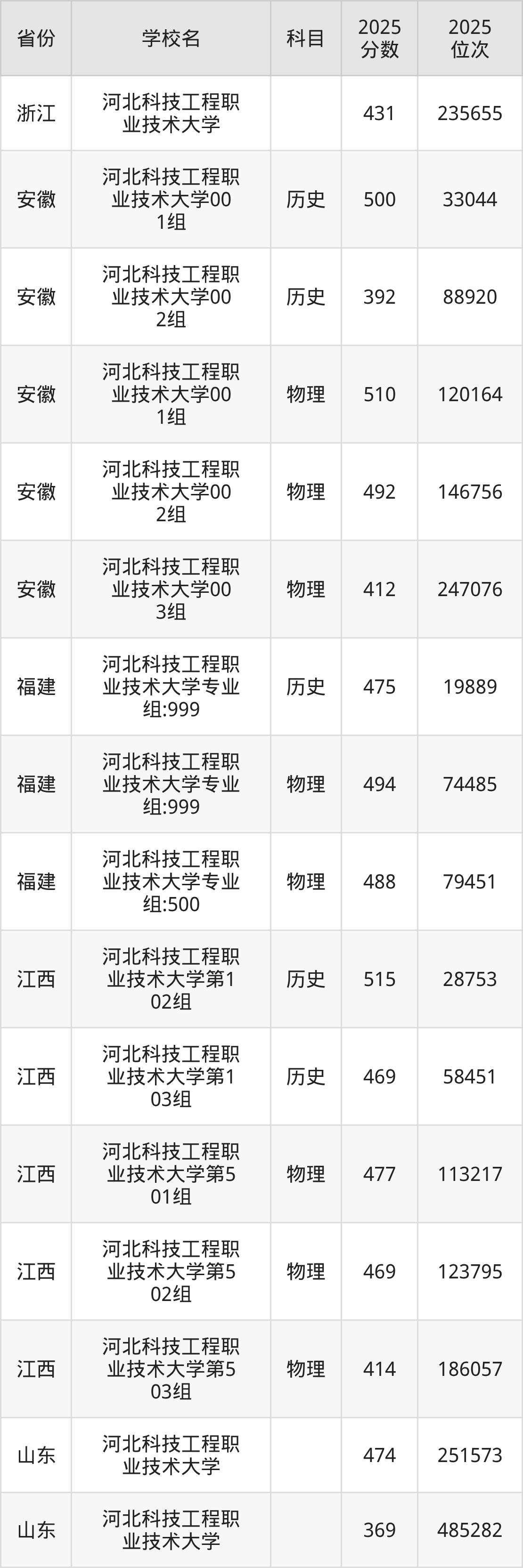 下面是河北科技工程职业技术大学2025年录取分数线各省汇总,一起来了解下吧。