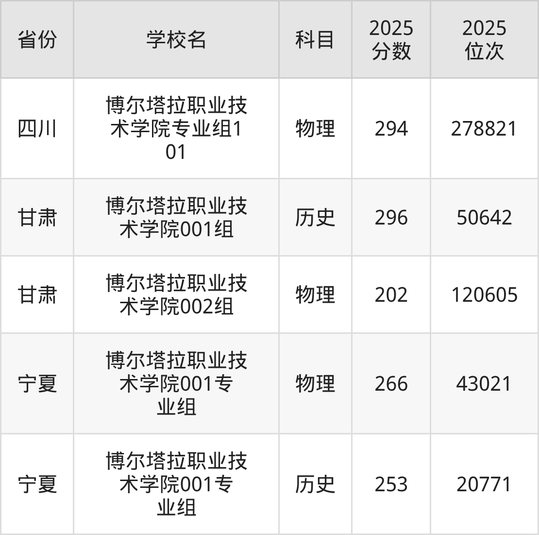 下面是博尔塔拉职业技术学院2025年录取分数线各省汇总,一起来了解下吧。