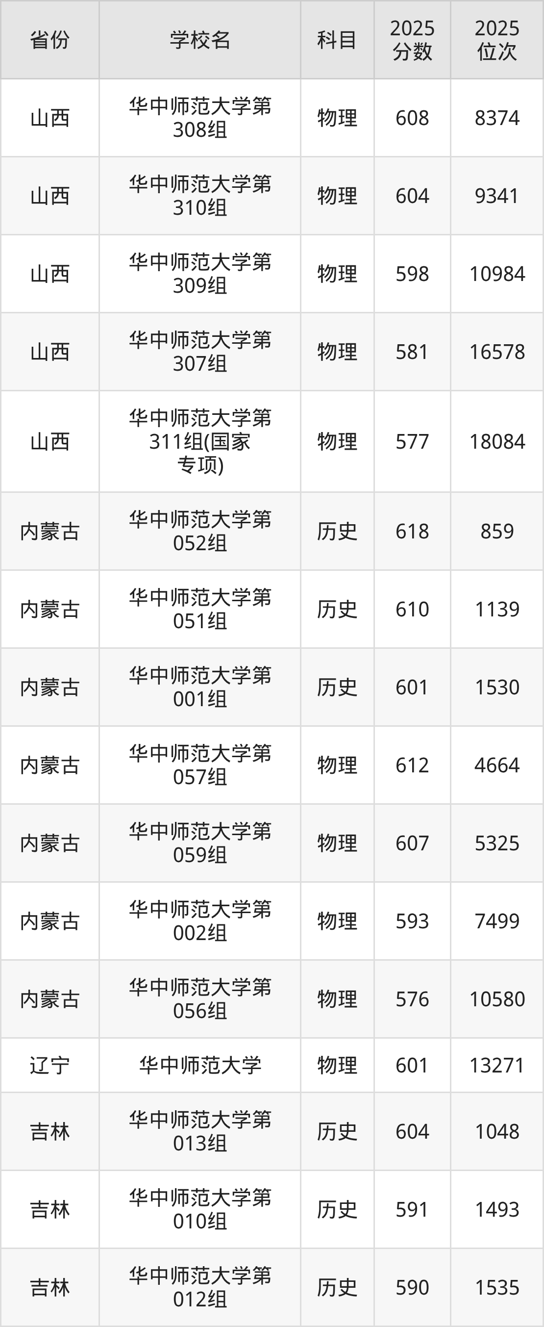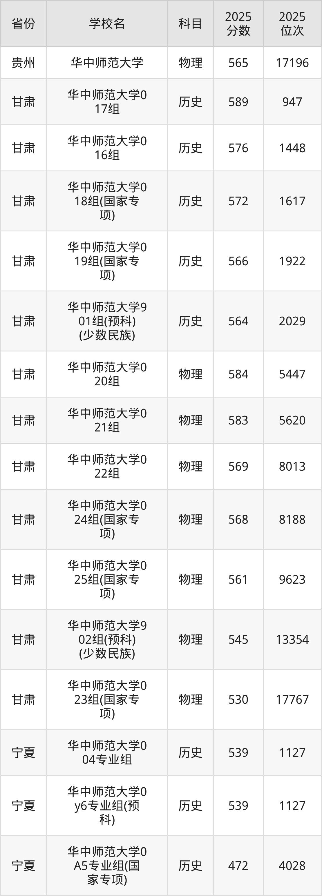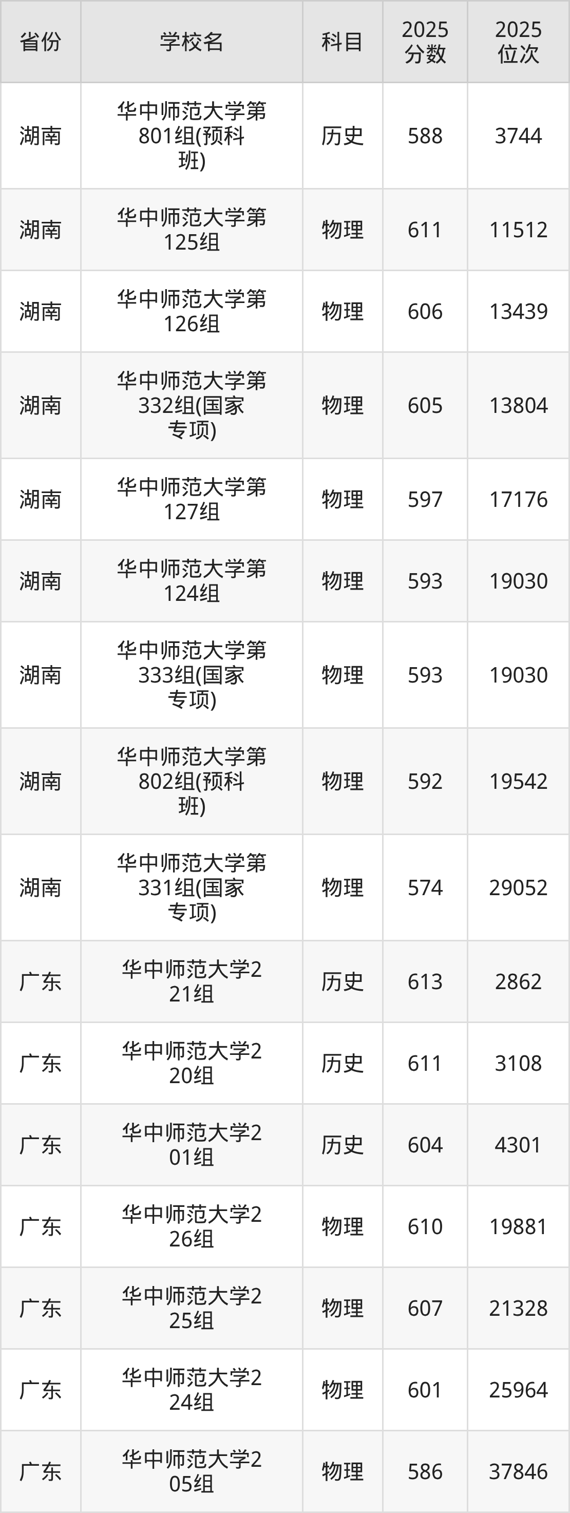 | 华中师范大学第 25组(国家专 项) | 物理 | 584 | 22070 |