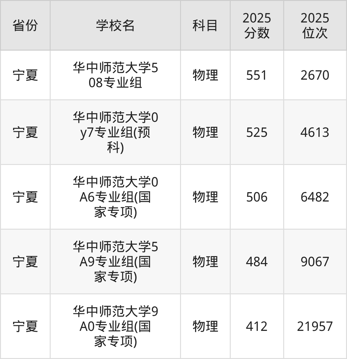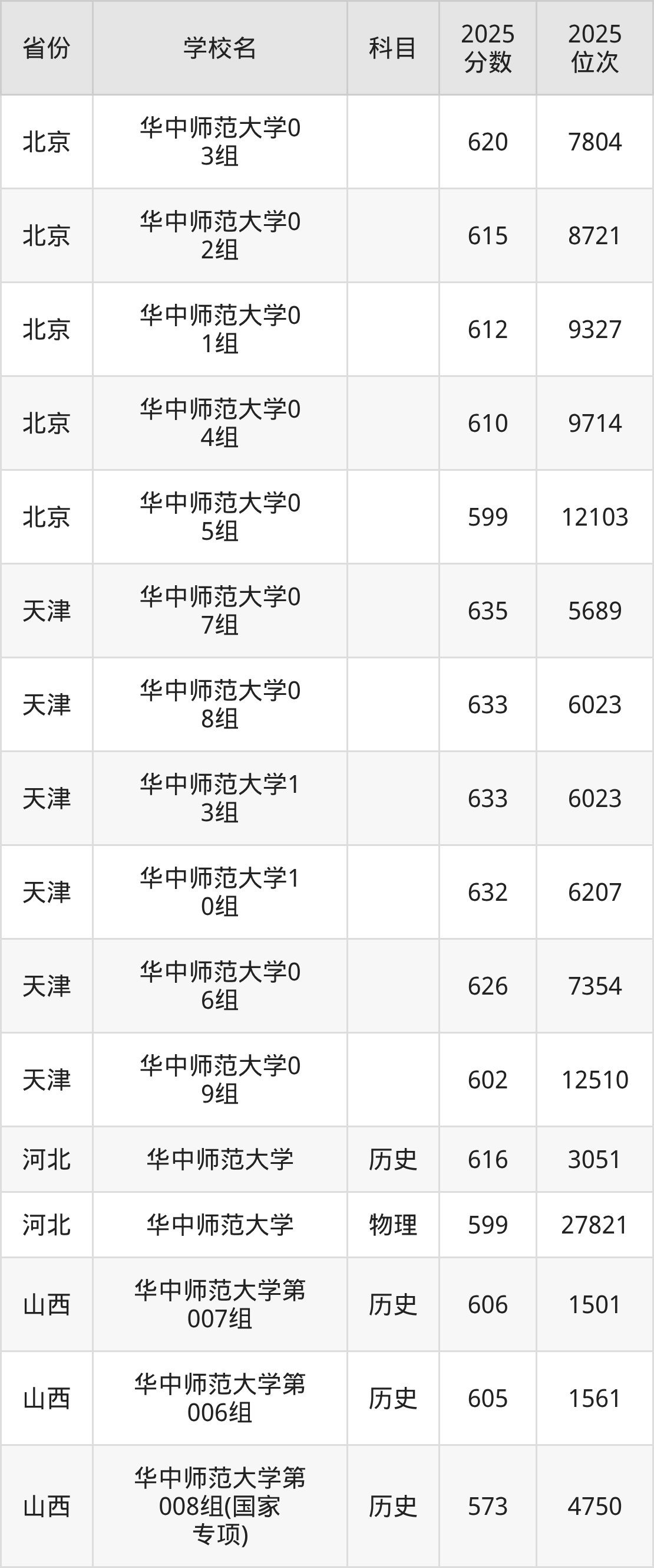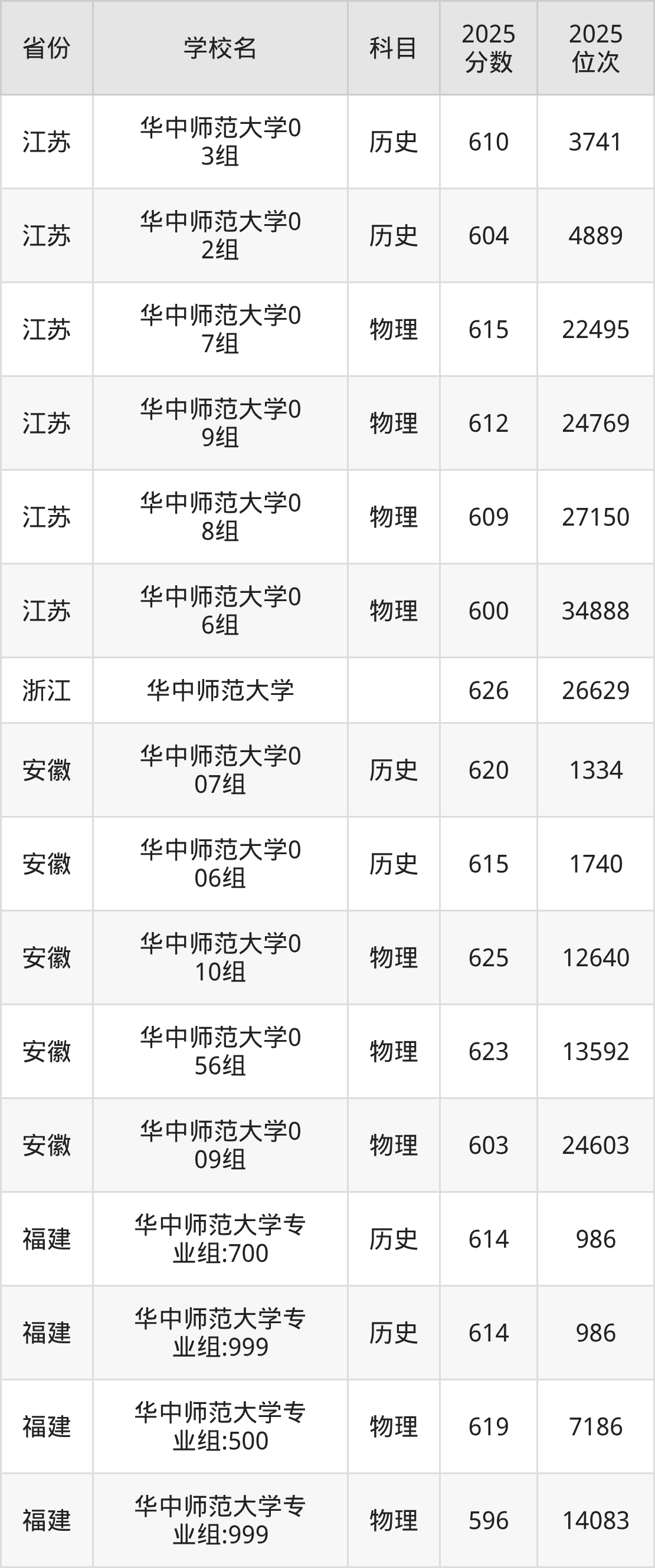 | 华中师范大学第 25组(国家专 项) | 物理 | 584 | 22070 |