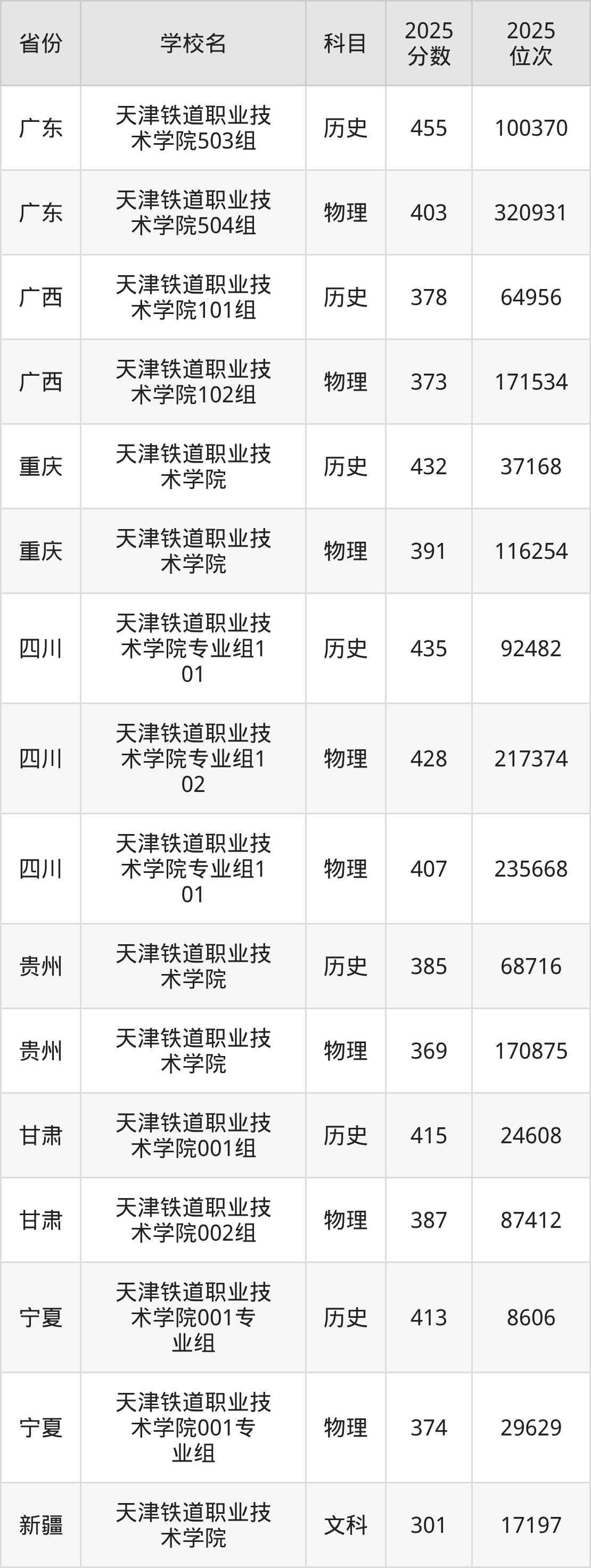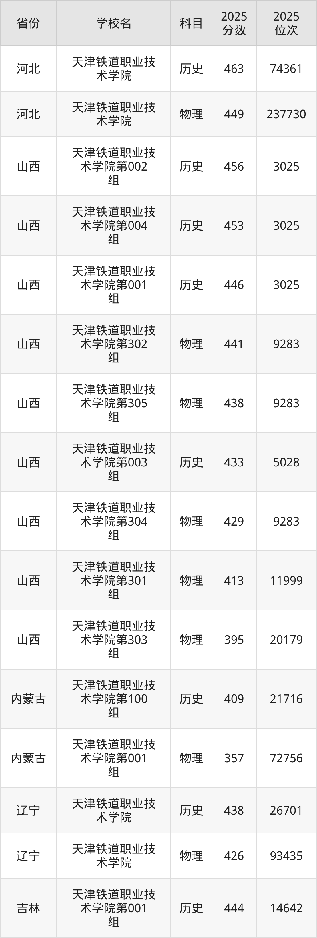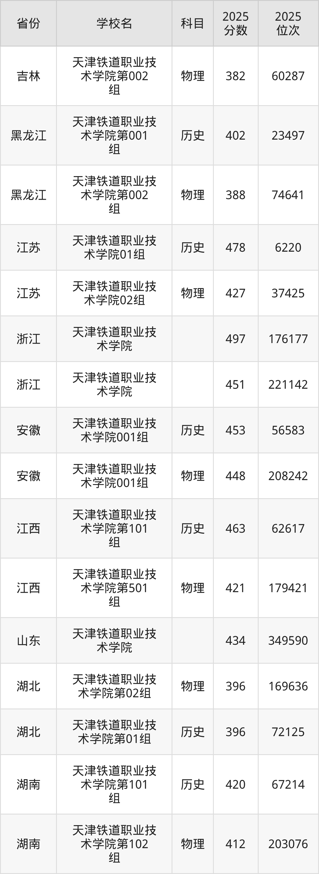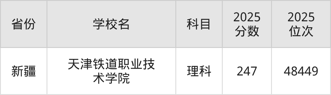 下面是天津铁道职业技术学院2025年录取分数线各省汇总,一起来了解下吧。