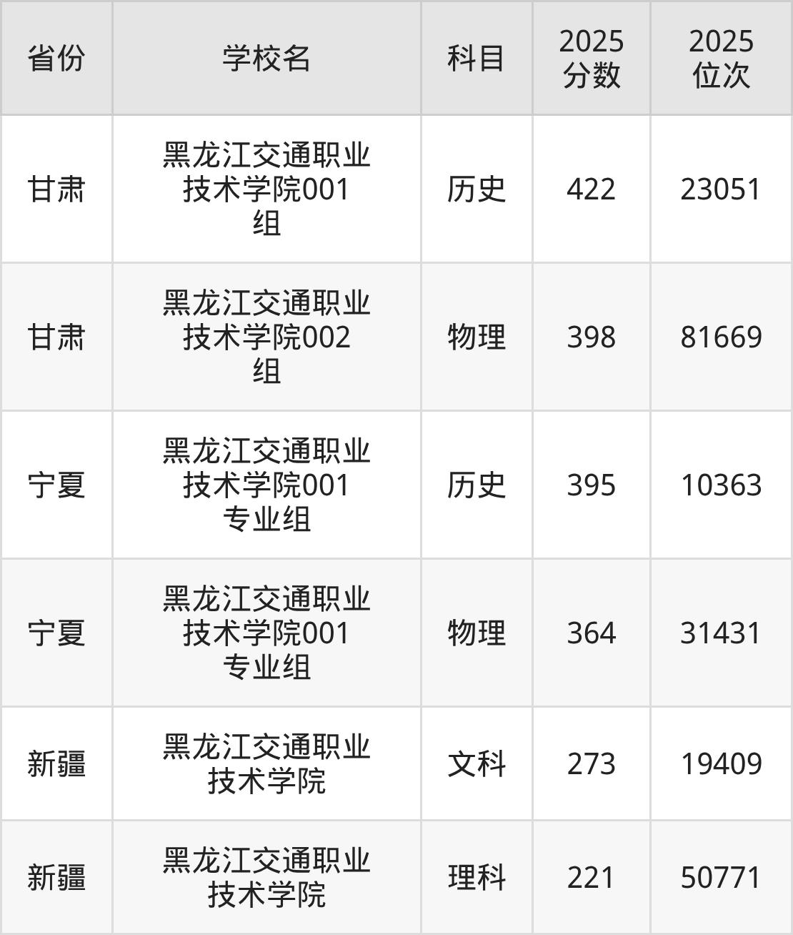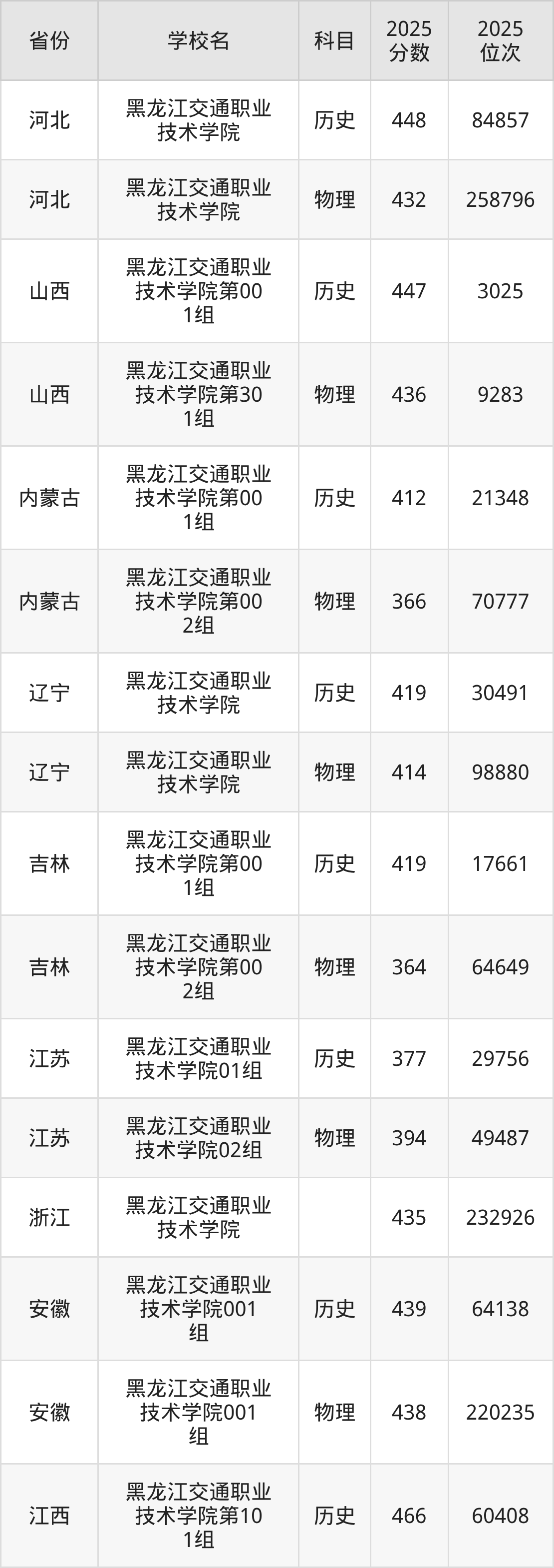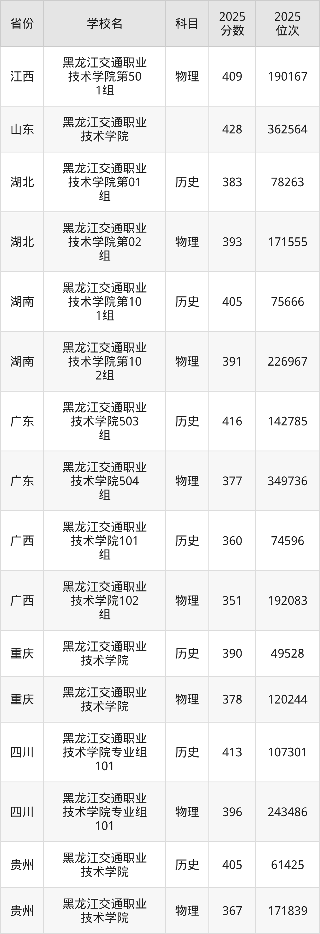 下面是黑龙江交通职业技术学院2025年录取分数线各省汇总,一起来了解下吧。