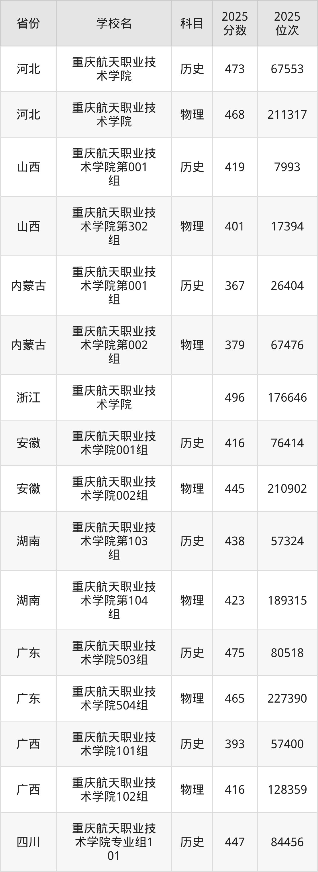 下面是重庆航天职业技术学院2025年录取分数线各省汇总,一起来了解下吧。