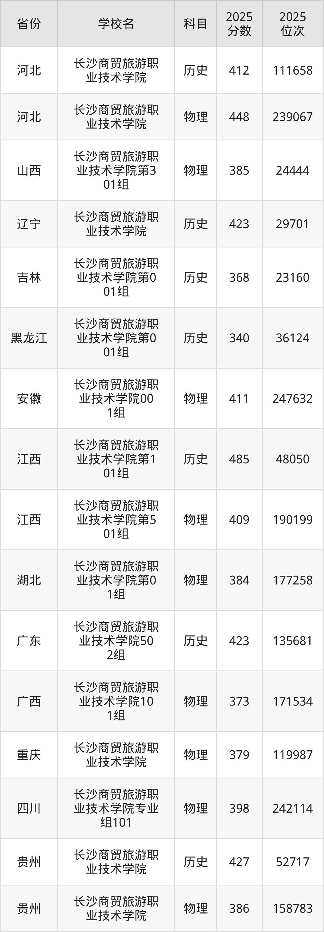 下面是长沙商贸旅游职业技术学院2025年录取分数线各省汇总,一起来了解下吧。
