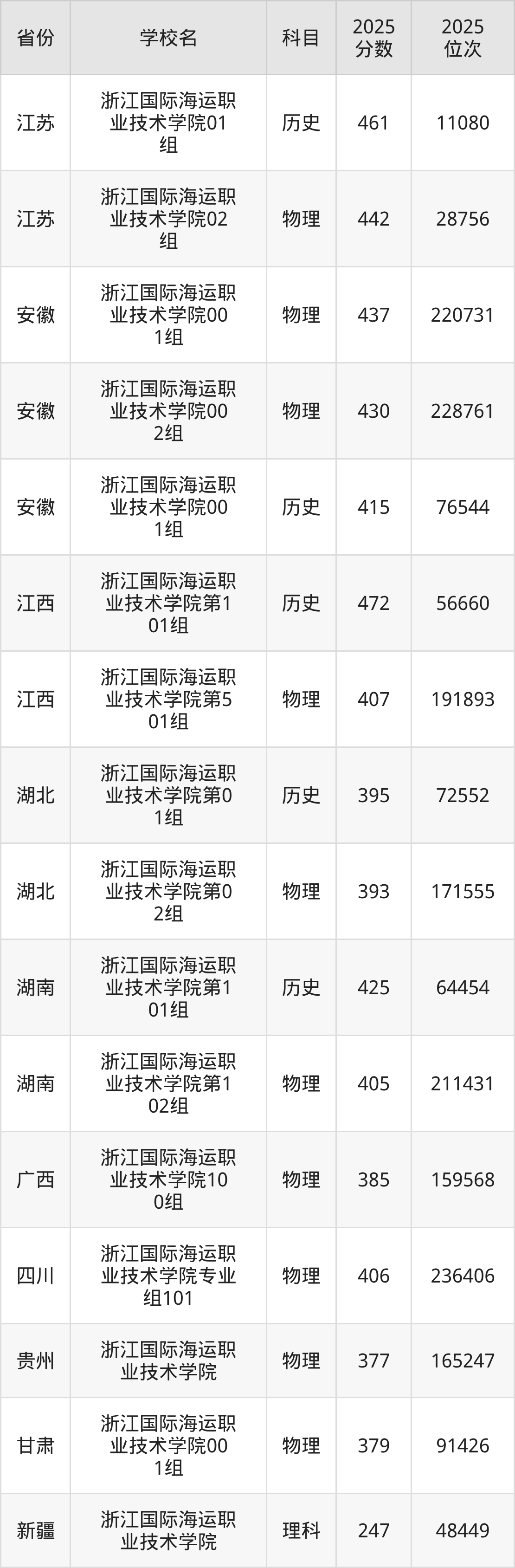 下面是浙江国际海运职业技术学院2025年录取分数线各省汇总,一起来了解下吧。