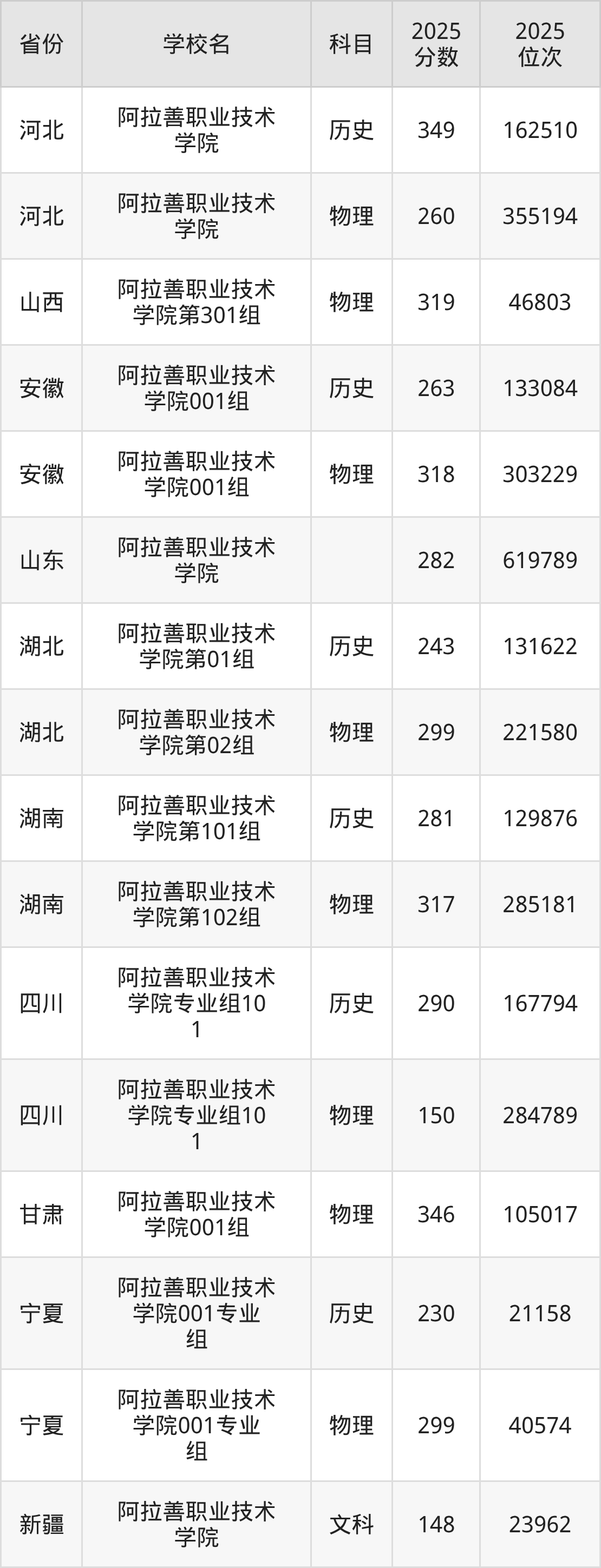 下面是阿拉善职业技术学院2025年录取分数线各省汇总,一起来了解下吧。