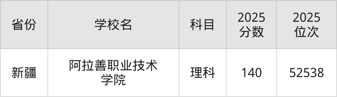 | 学校名 | 科目 | 2025 分数 | 2025 位次 |