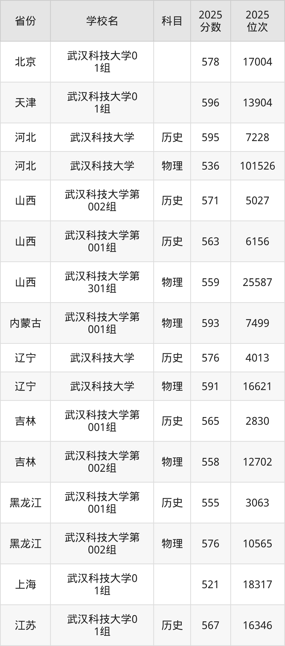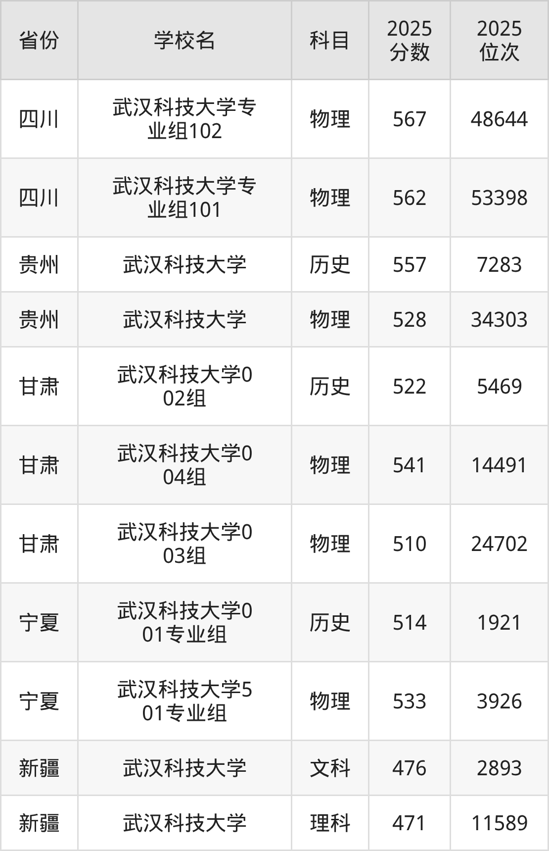 下面是武汉科技大学2025年录取分数线各省汇总,一起来了解下吧。