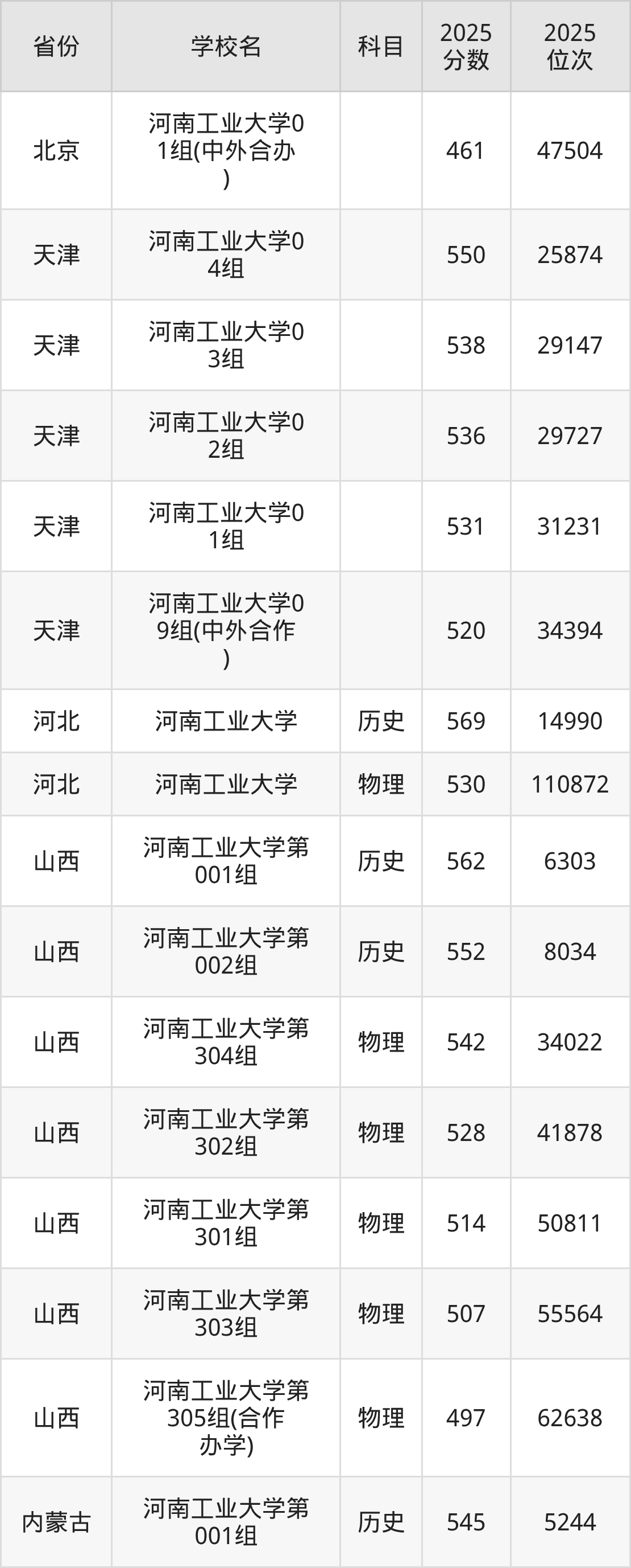 下面是河南工业大学2025年录取分数线各省汇总,一起来了解下吧。