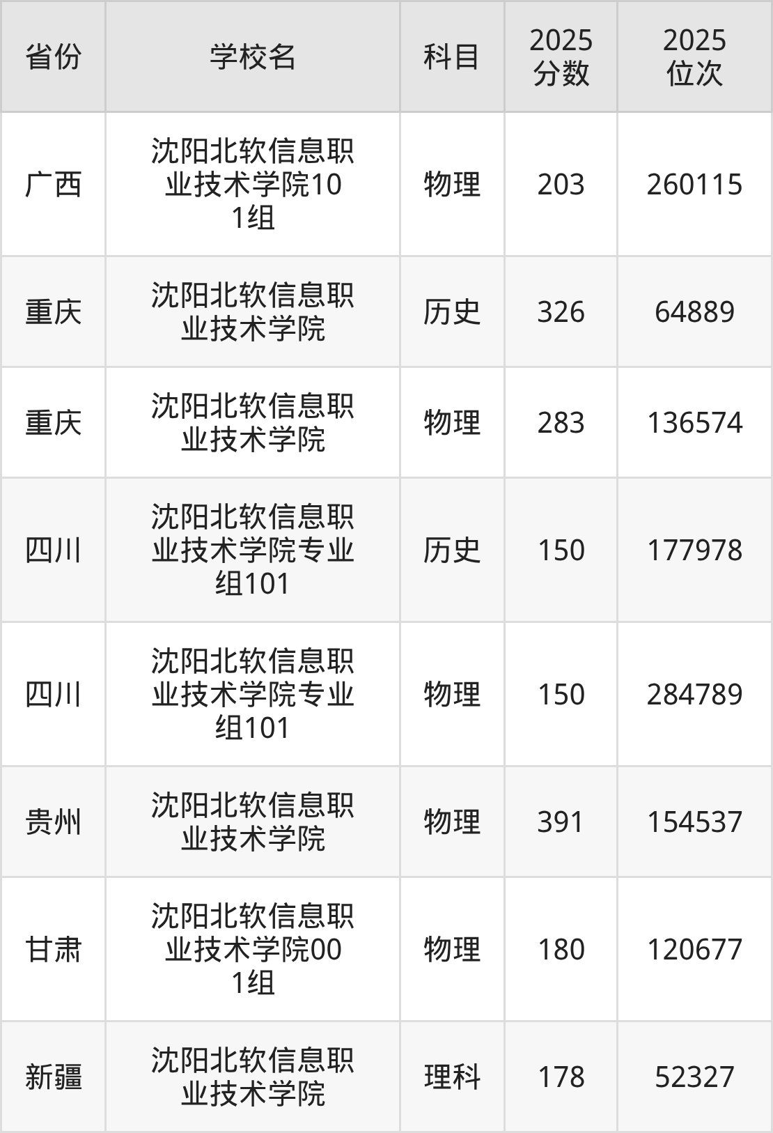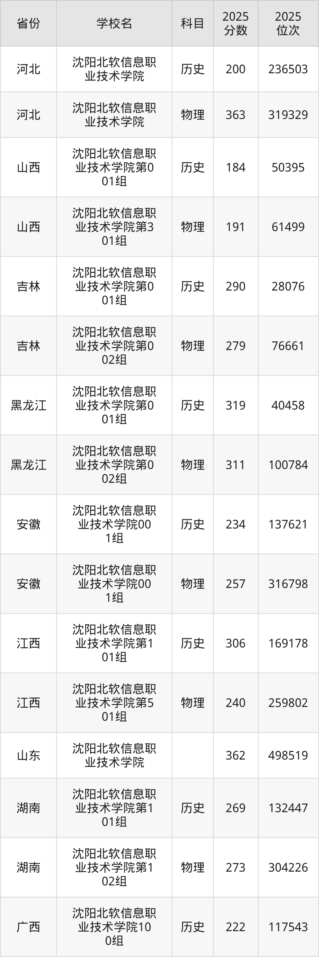 下面是沈阳北软信息职业技术学院2025年录取分数线各省汇总,一起来了解下吧。