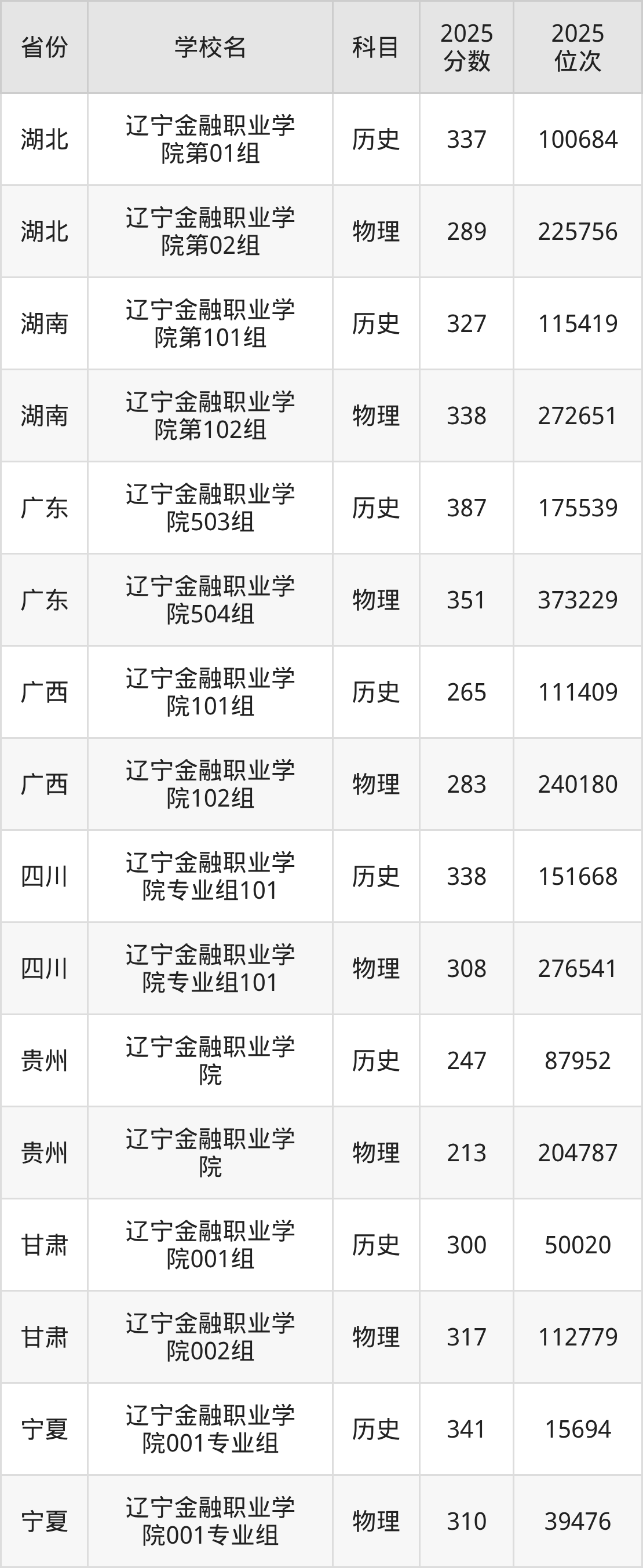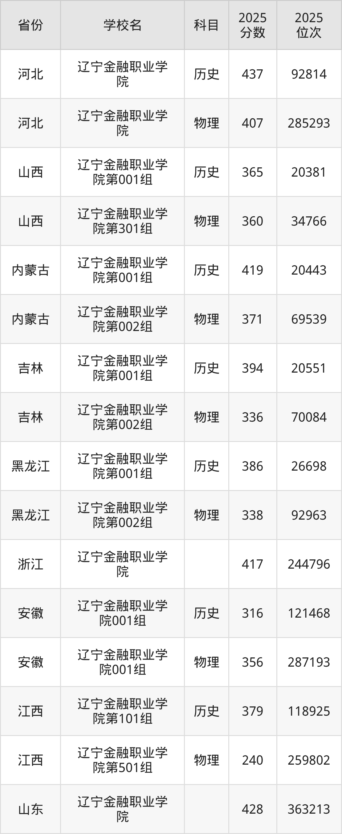 下面是辽宁金融职业学院2025年录取分数线各省汇总,一起来了解下吧。