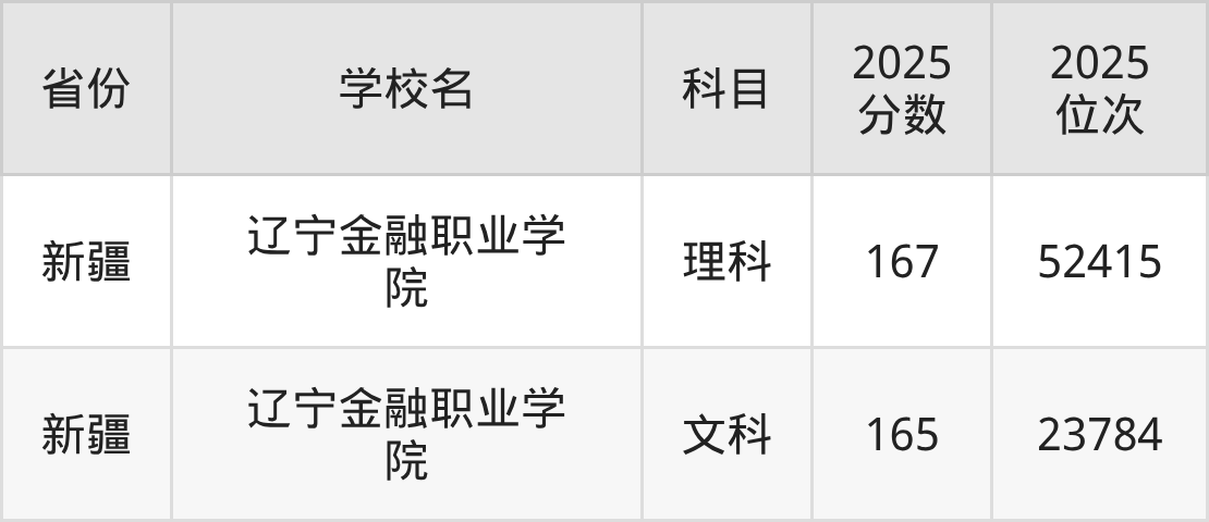 | 学校名 | 科目 | 2025 分数 | 2025 位次 |