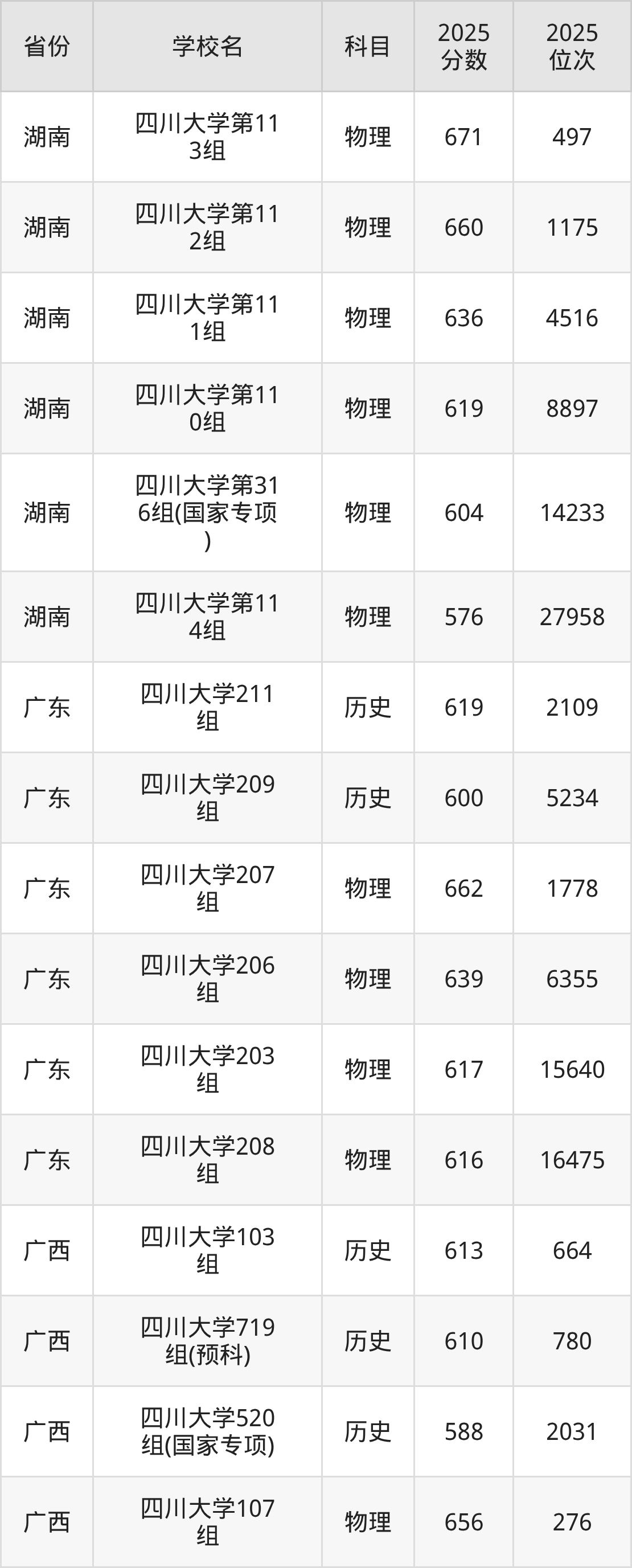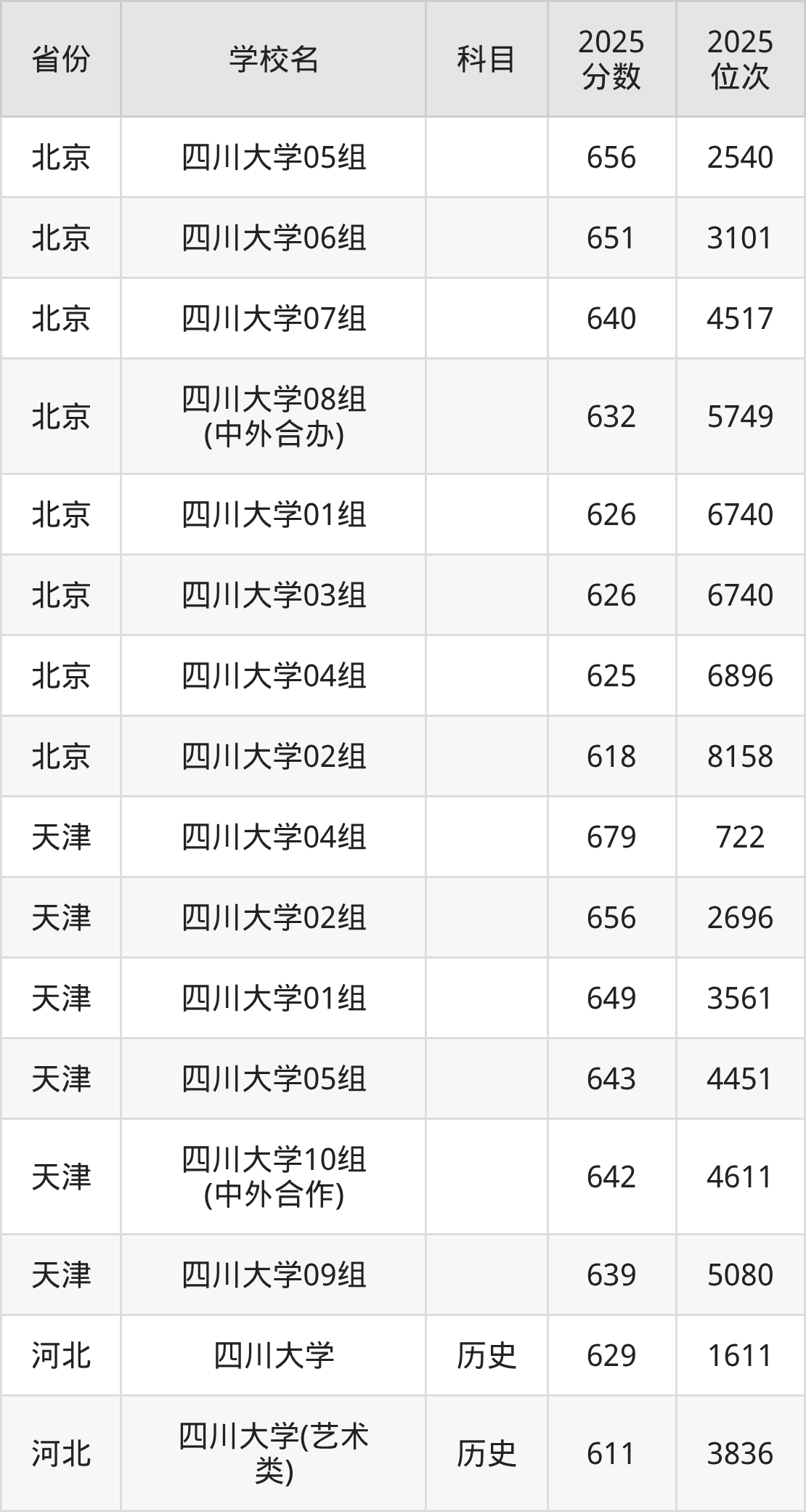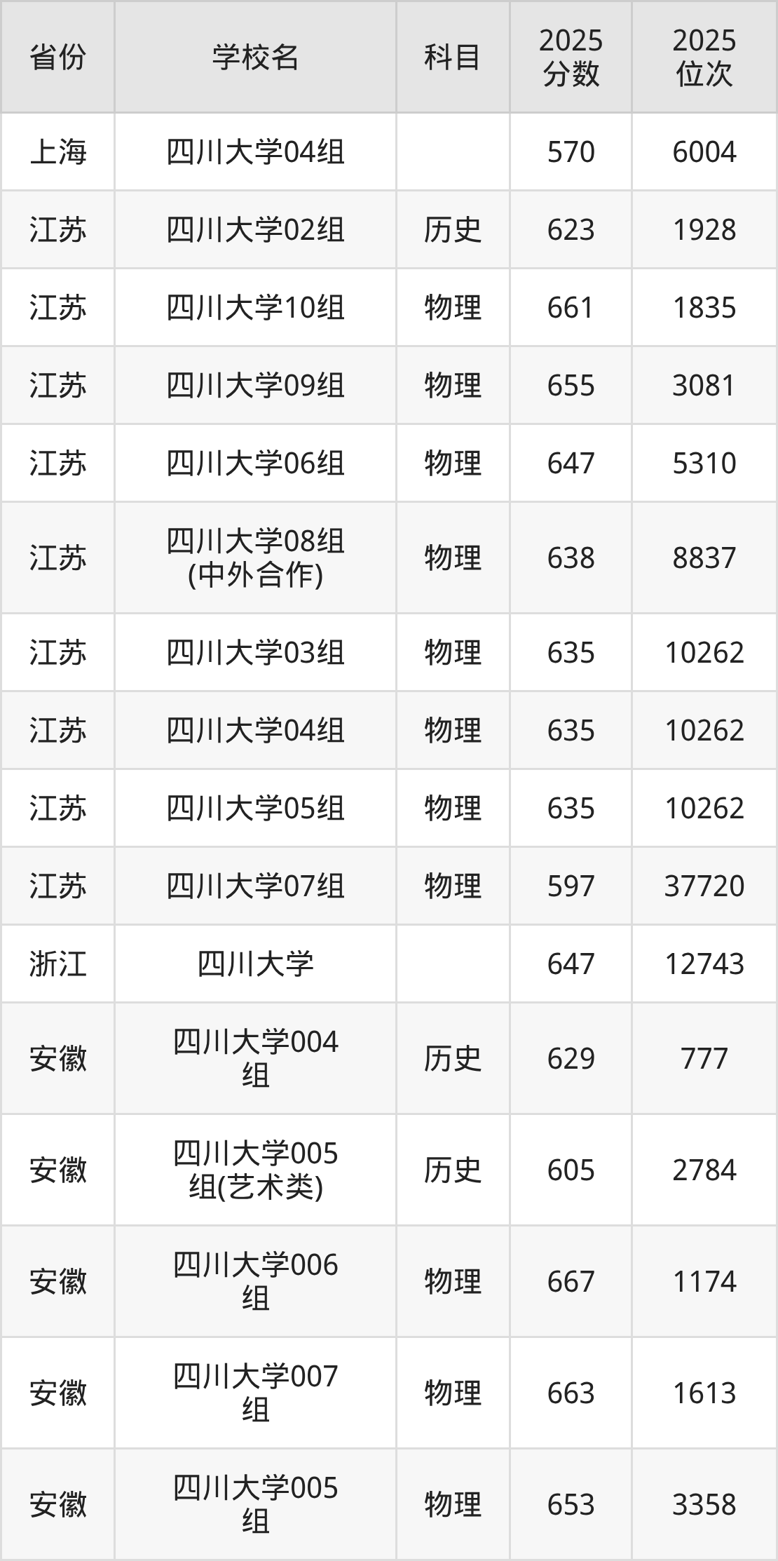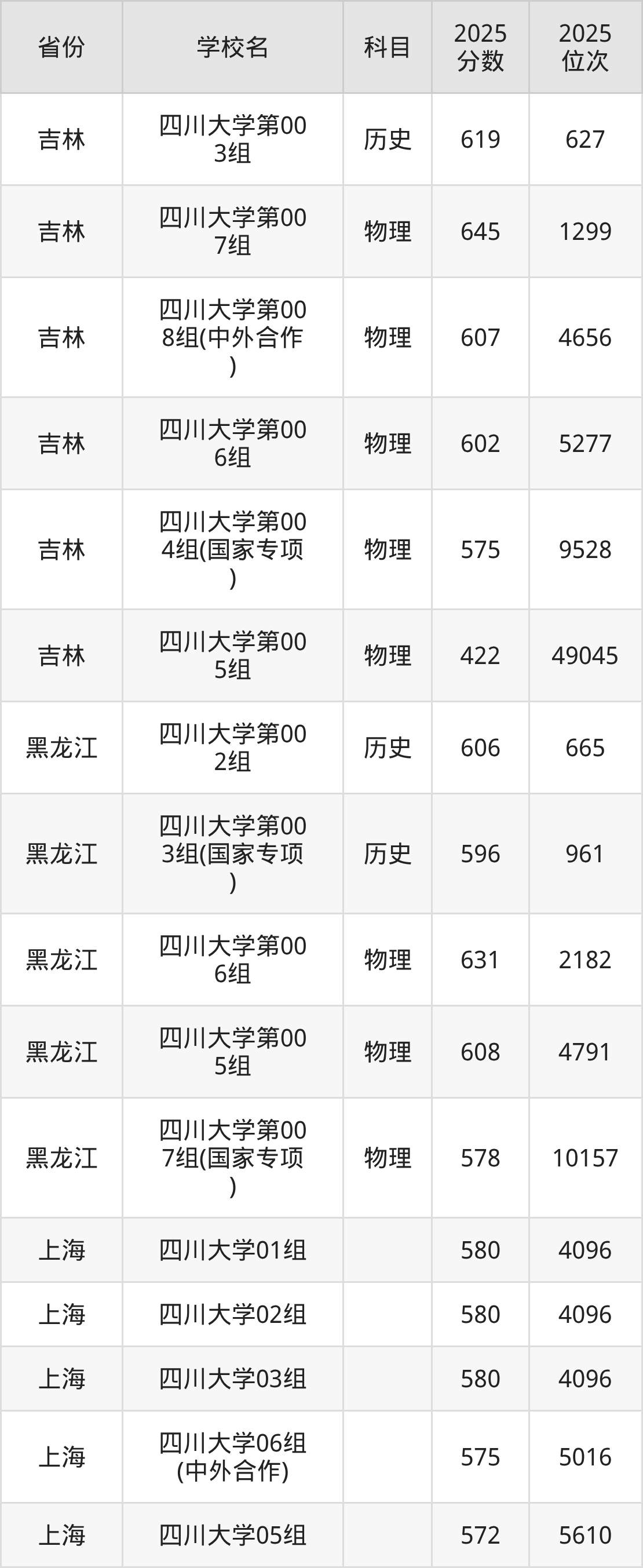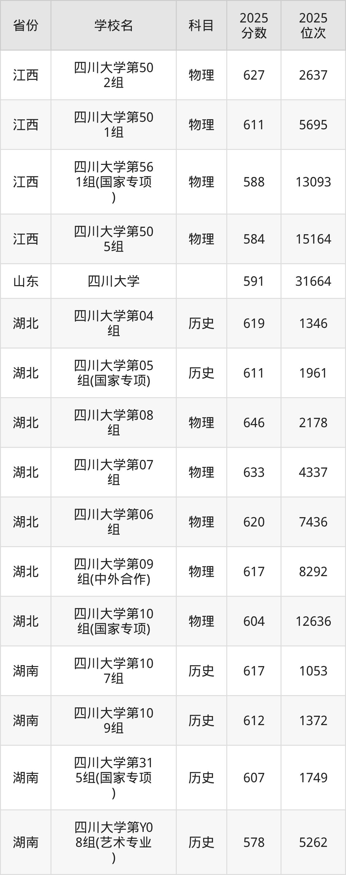 下面是四川大学2025年录取分数线各省汇总,一起来了解下吧。