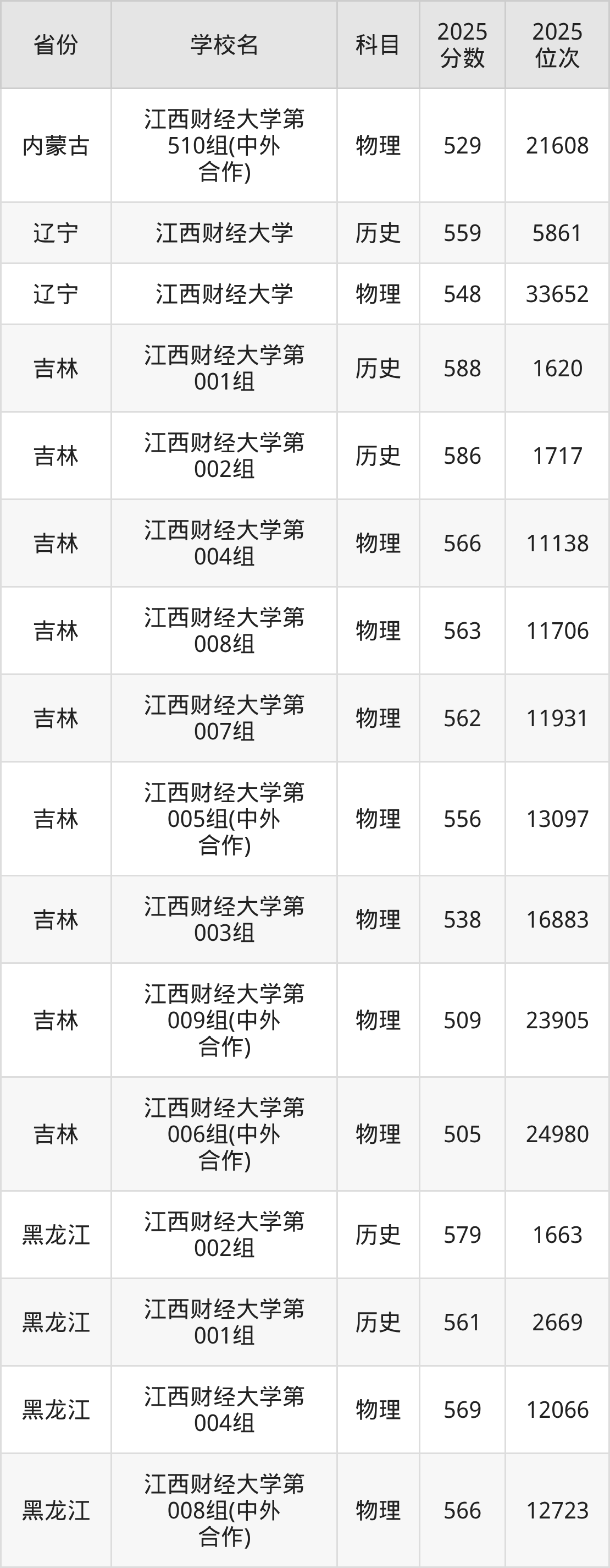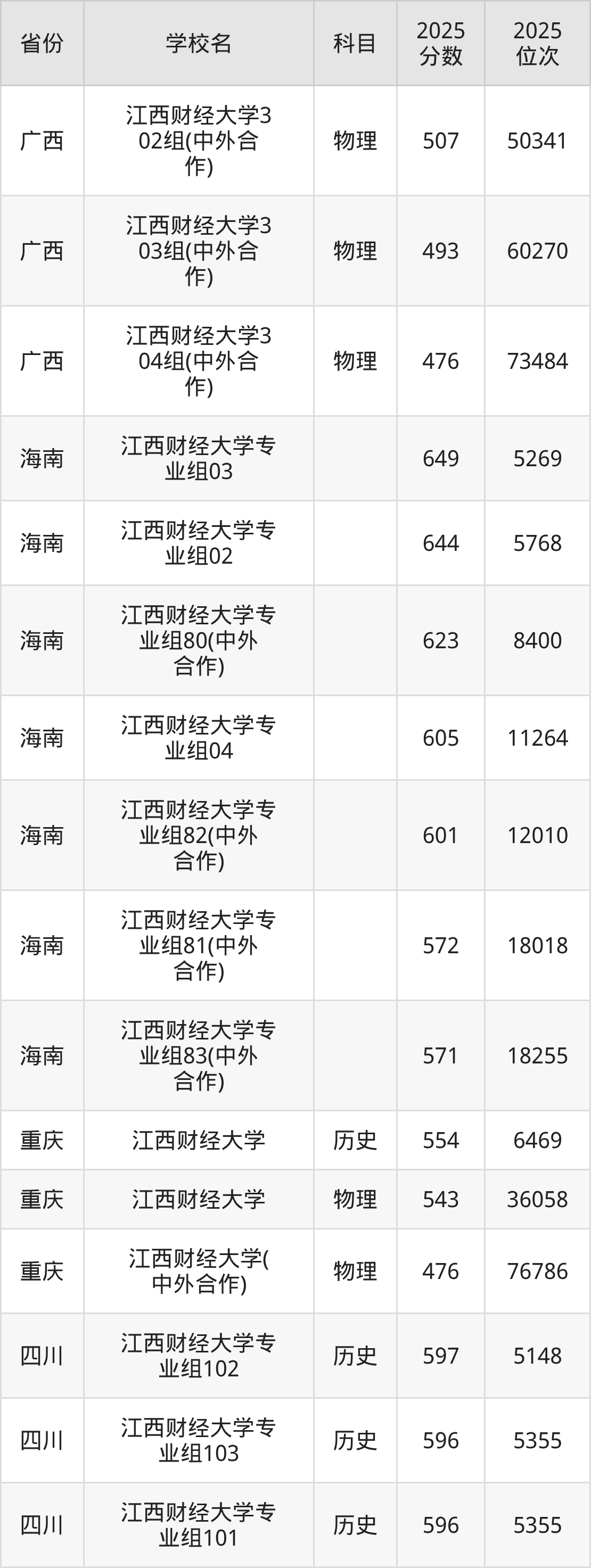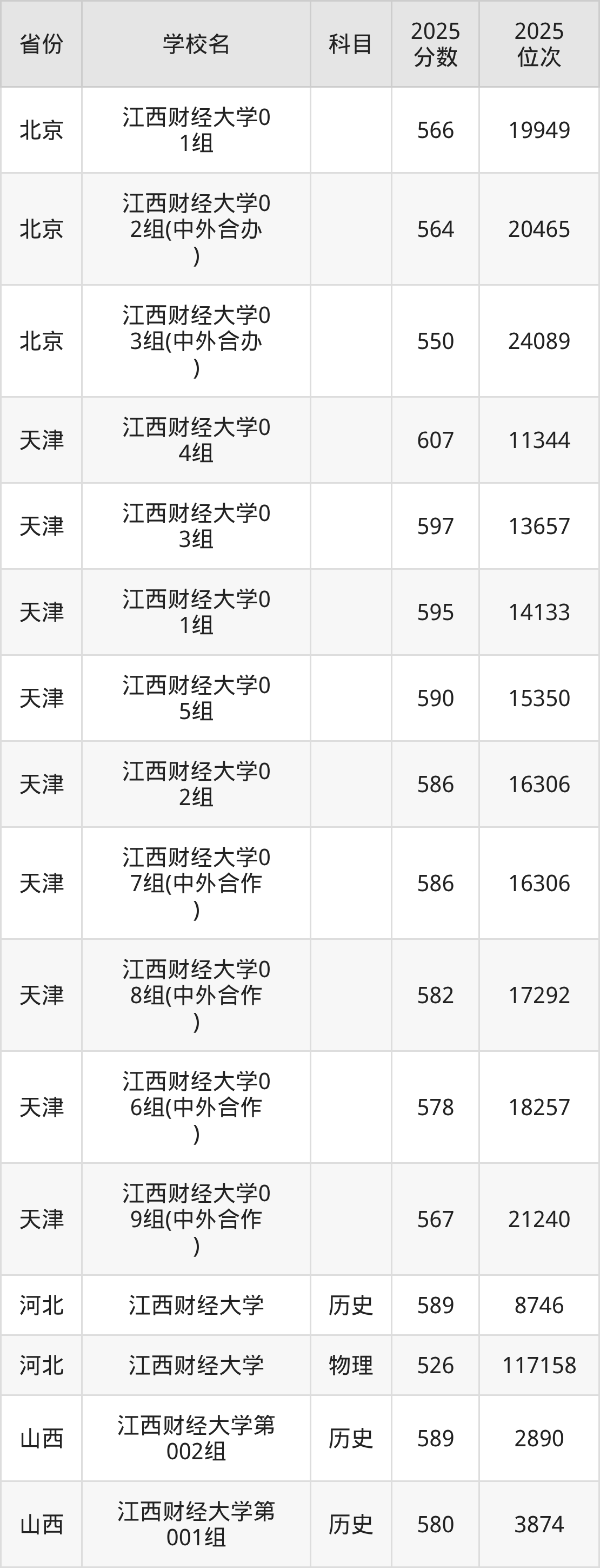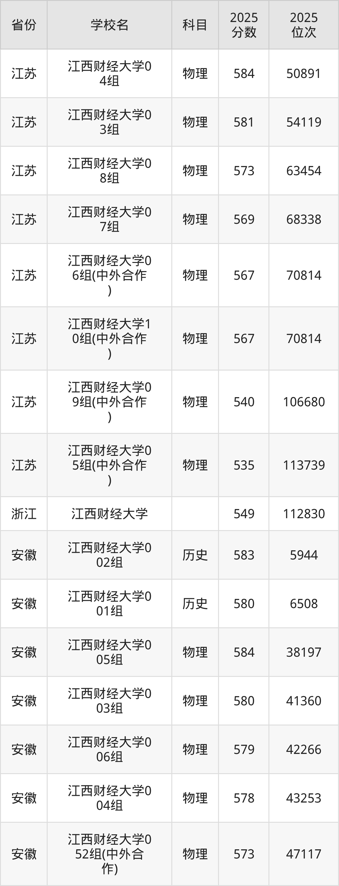 2025年江西财经大学历史类最低分575分(5784名)、物理类最低分508分(74045名)。