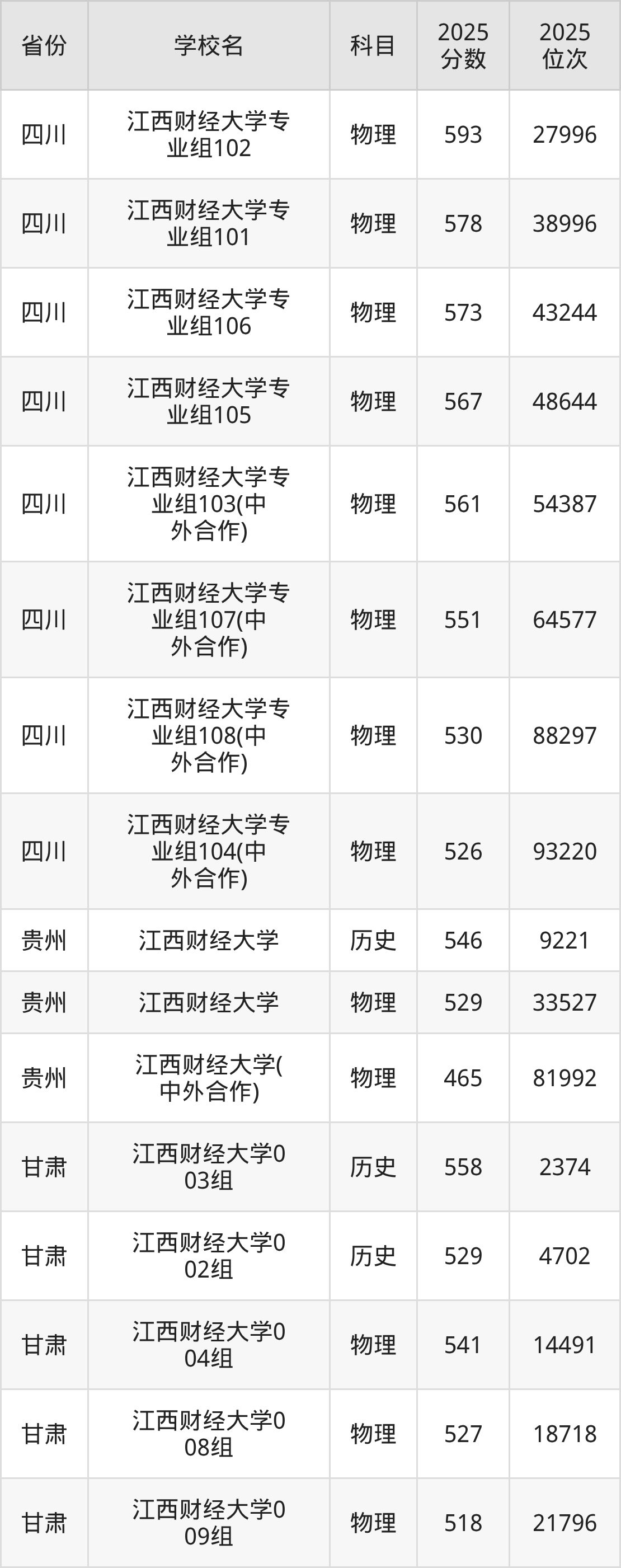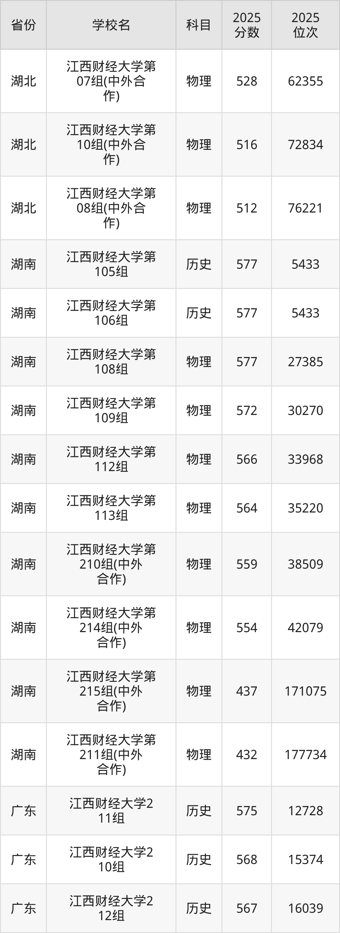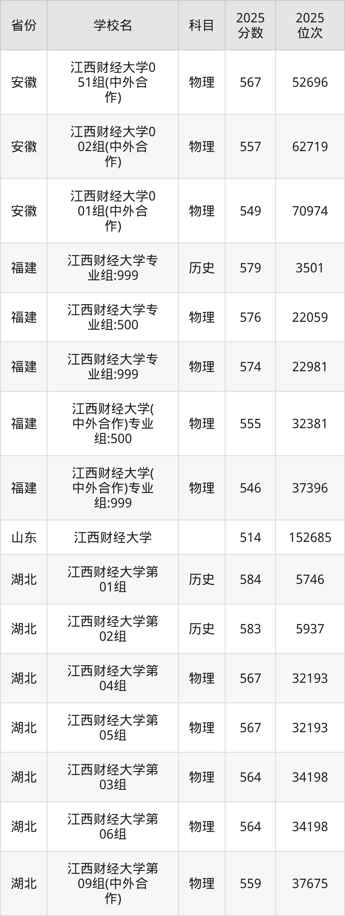 2025年江西财经大学历史类最低分575分(5784名)、物理类最低分508分(74045名)。