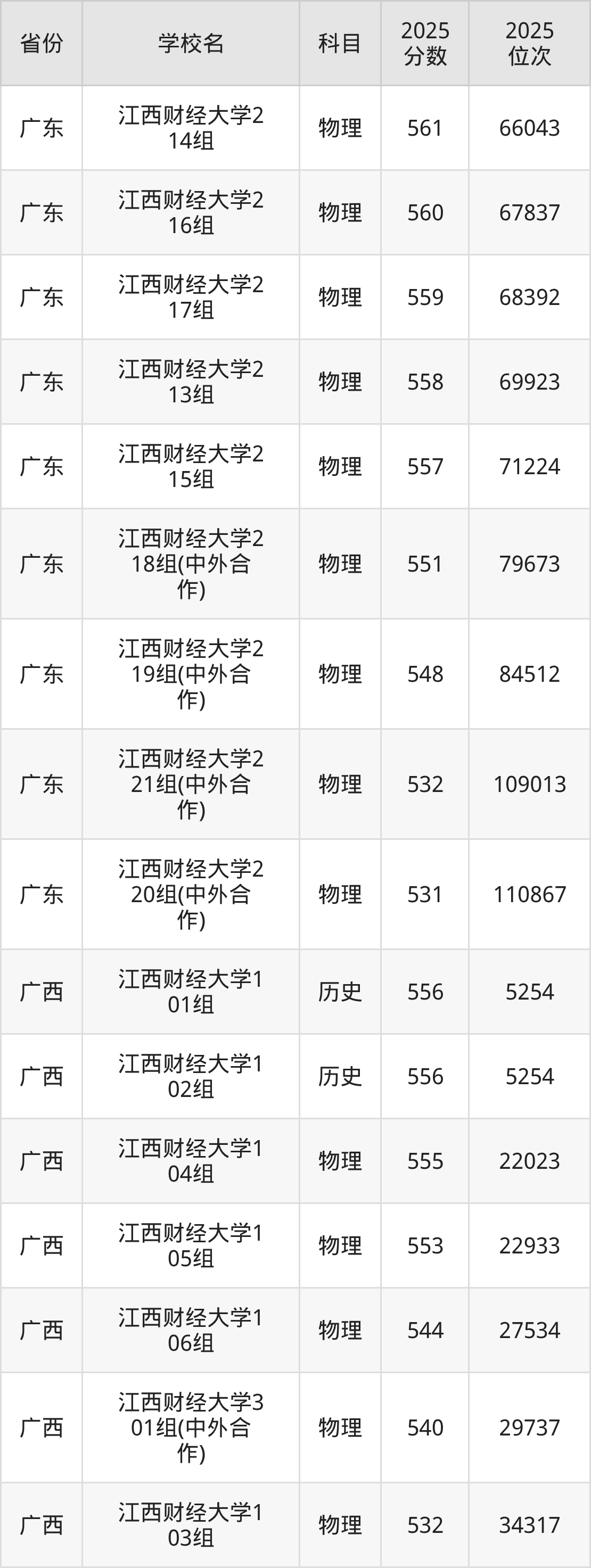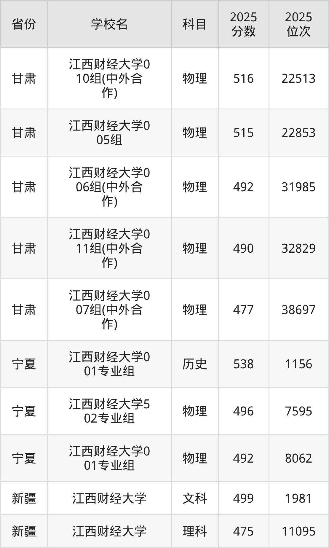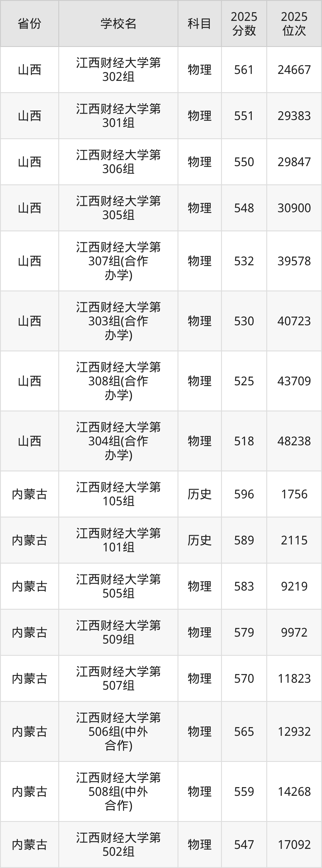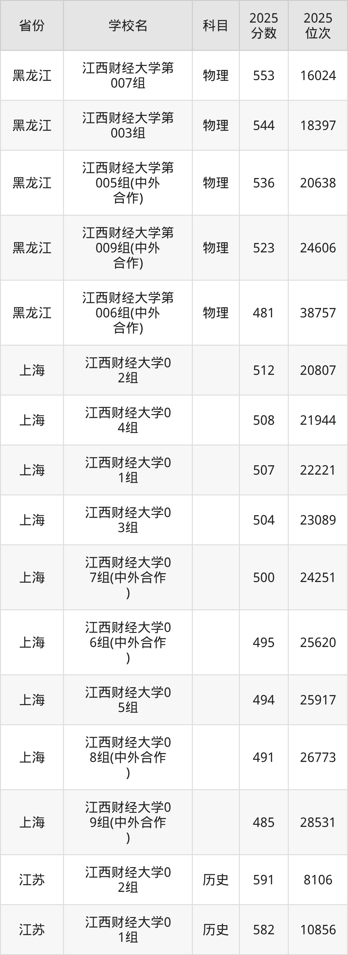 2025年江西财经大学历史类最低分575分(5784名)、物理类最低分508分(74045名)。