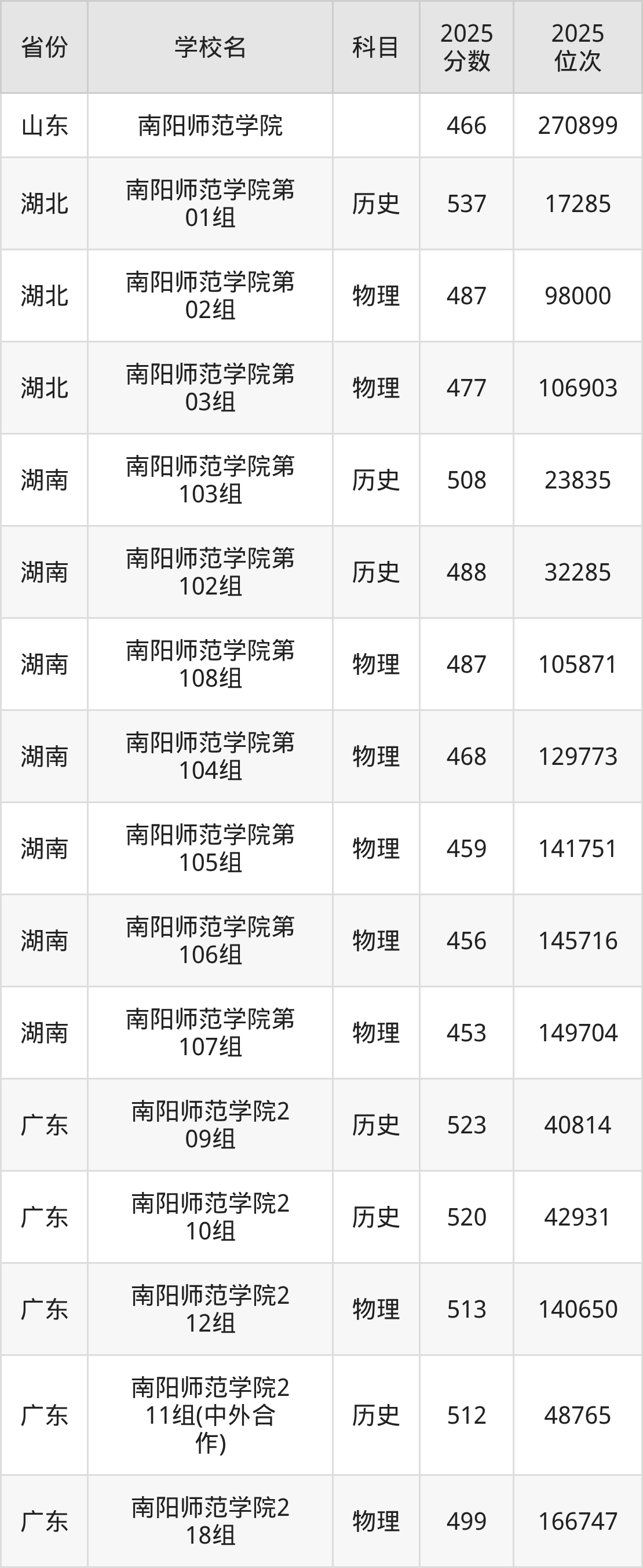 2026年南阳师范学院录取分数线预计在480分及以上,在各省录取最低分存在一定差异,如:2025年南阳师范学院在浙江录取最低分是504分,在山东录取最低分是466分,在湖北录取最低历史类537分、物理类477分。