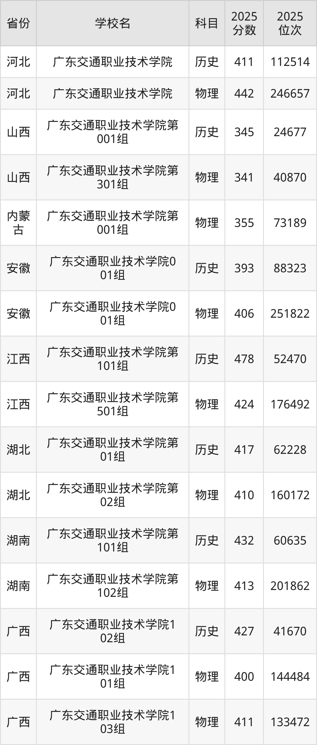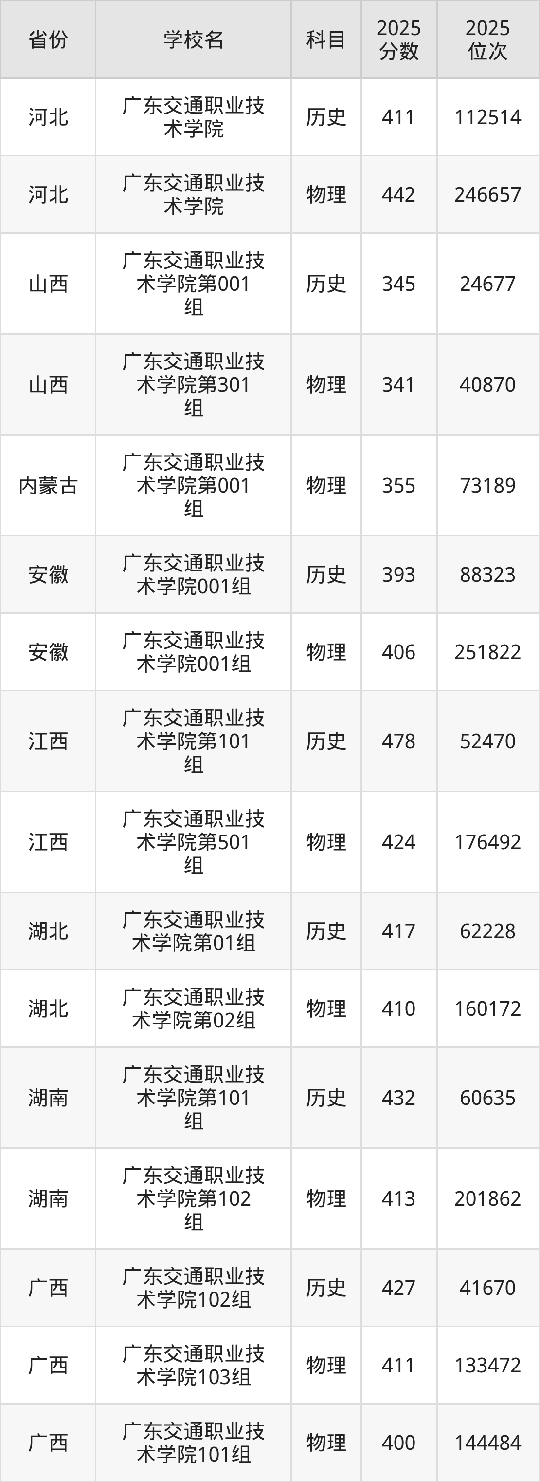 下面是广东交通职业技术学院2025年录取分数线各省汇总,一起来了解下吧。