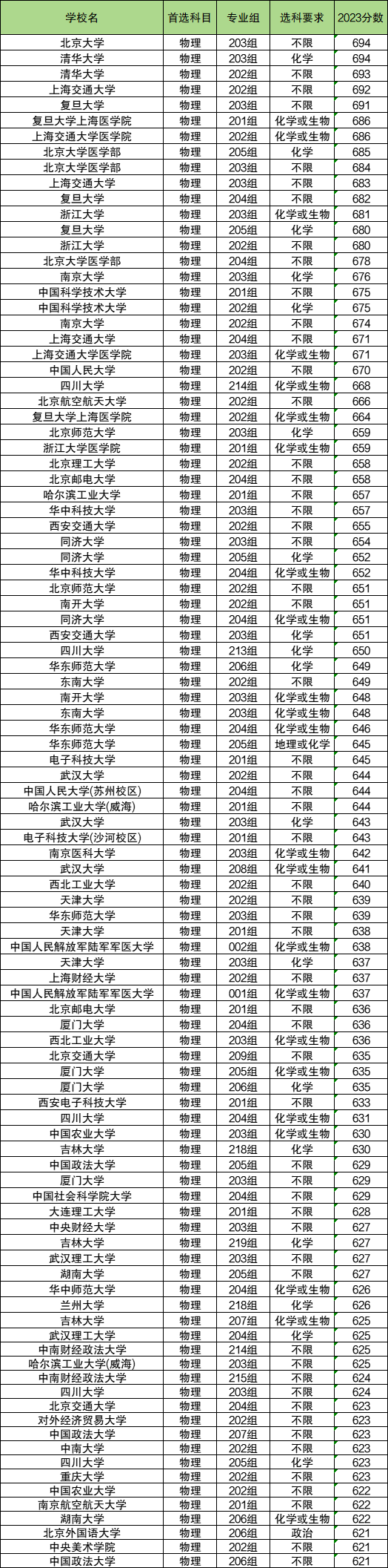 | 北京大学 | 物理 | 203组 | 不限 | 694 |