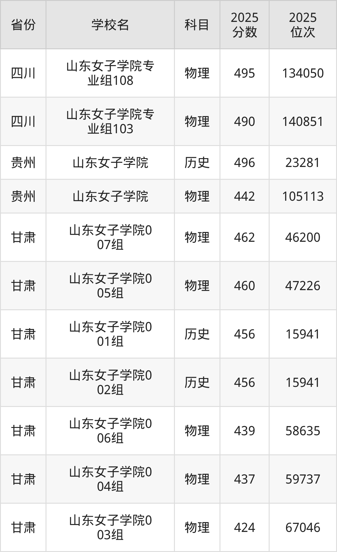 2025年山东女子学院在省内,最低分是441分、对应位次是331578名。