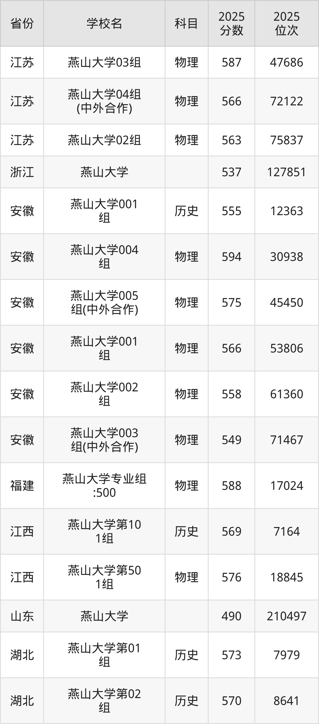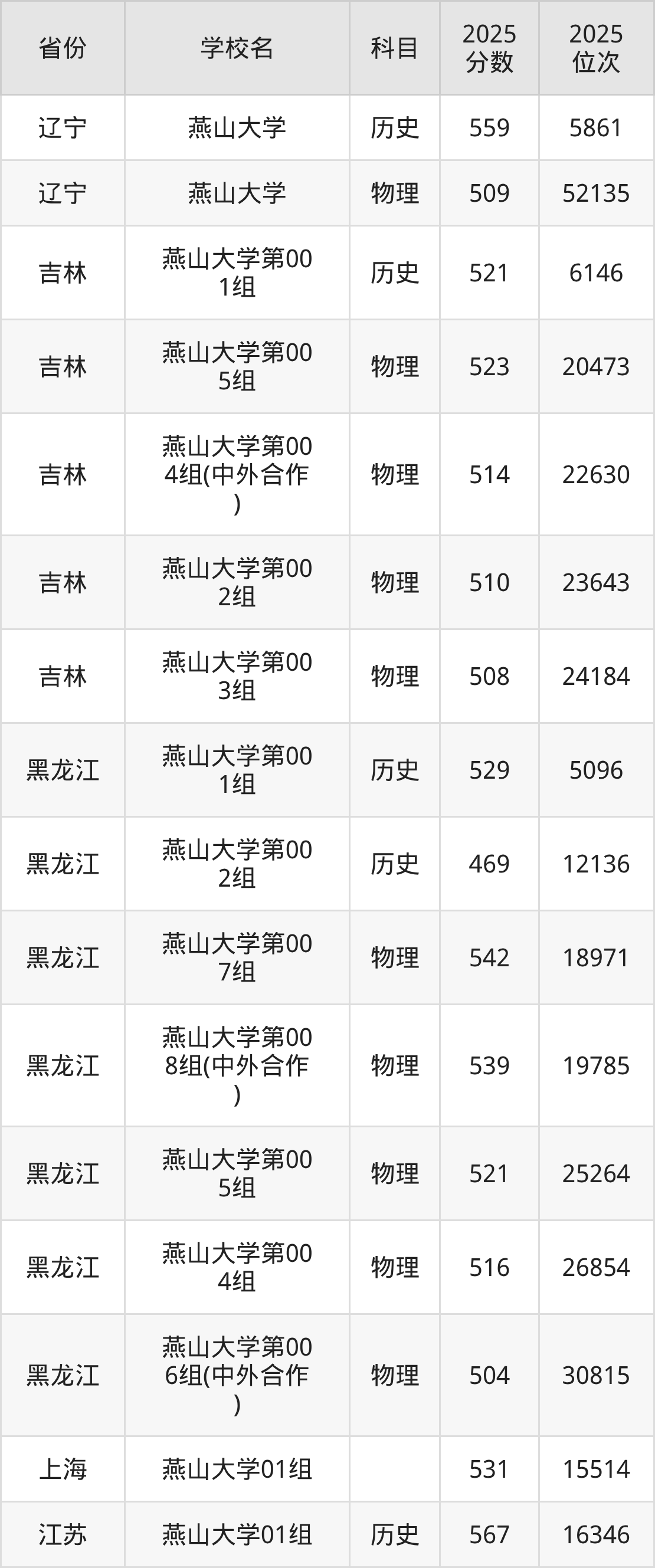 2025年燕山大学历史类最低分565分(16482名)、物理类最低分526分(117158名)。