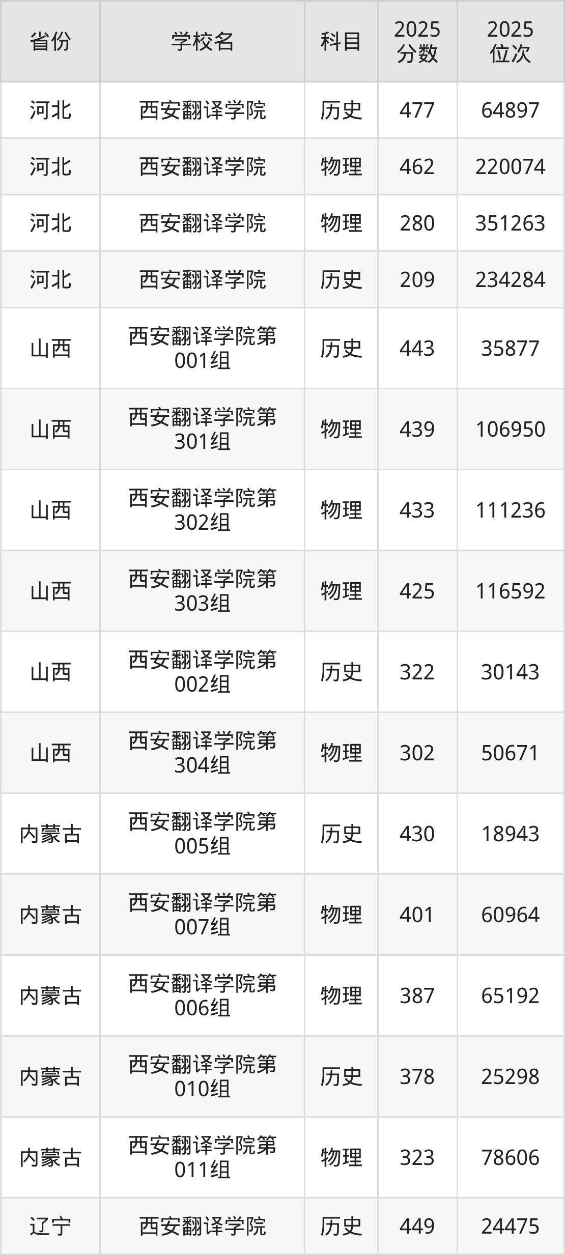 2025年西安翻译学院历史类最低分434分(15865名)、物理类最低分382分(60287名)。
