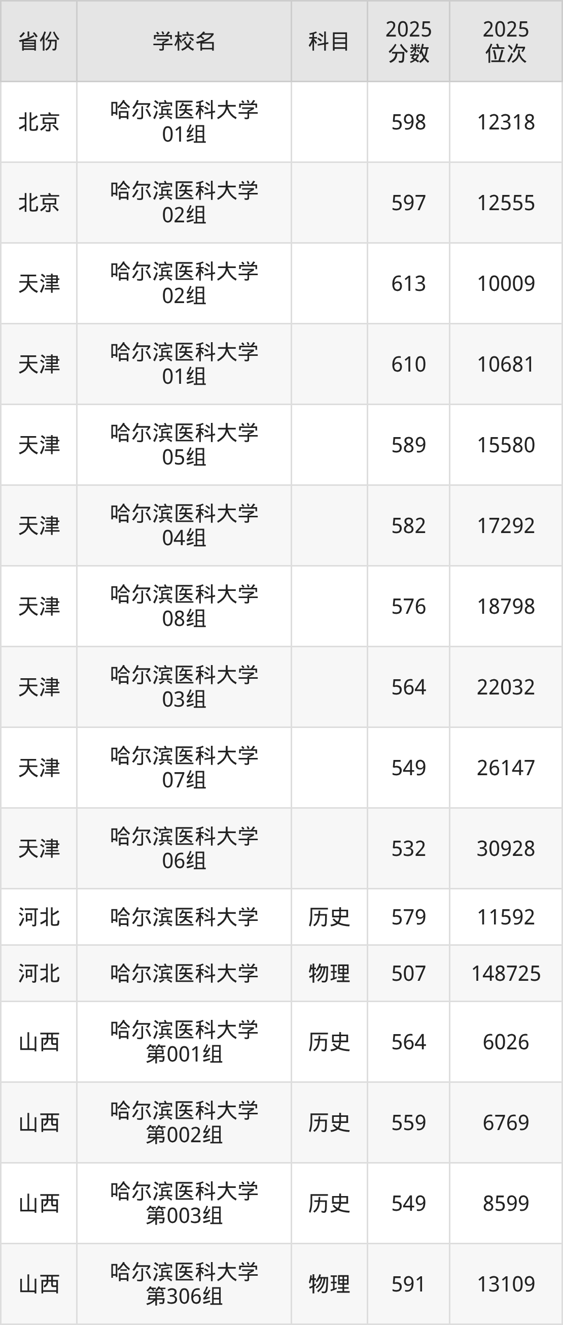 下面是哈尔滨医科大学2025年录取分数线各省汇总,一起来了解下吧。