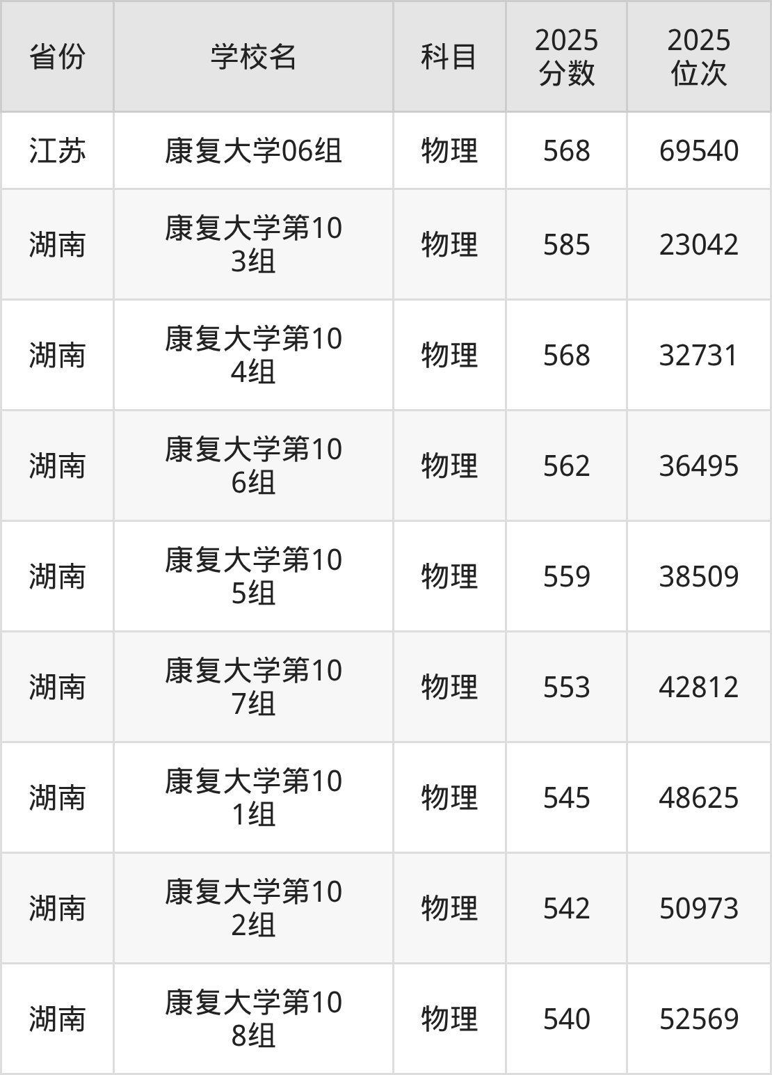2026年康复大学录取分数线预计在560分及以上,在各省录取最低分存在一定差异,如:2025年康复大学在江苏录取最低物理类568分,在山东录取最低分是561分,在湖南录取最低物理类540分。