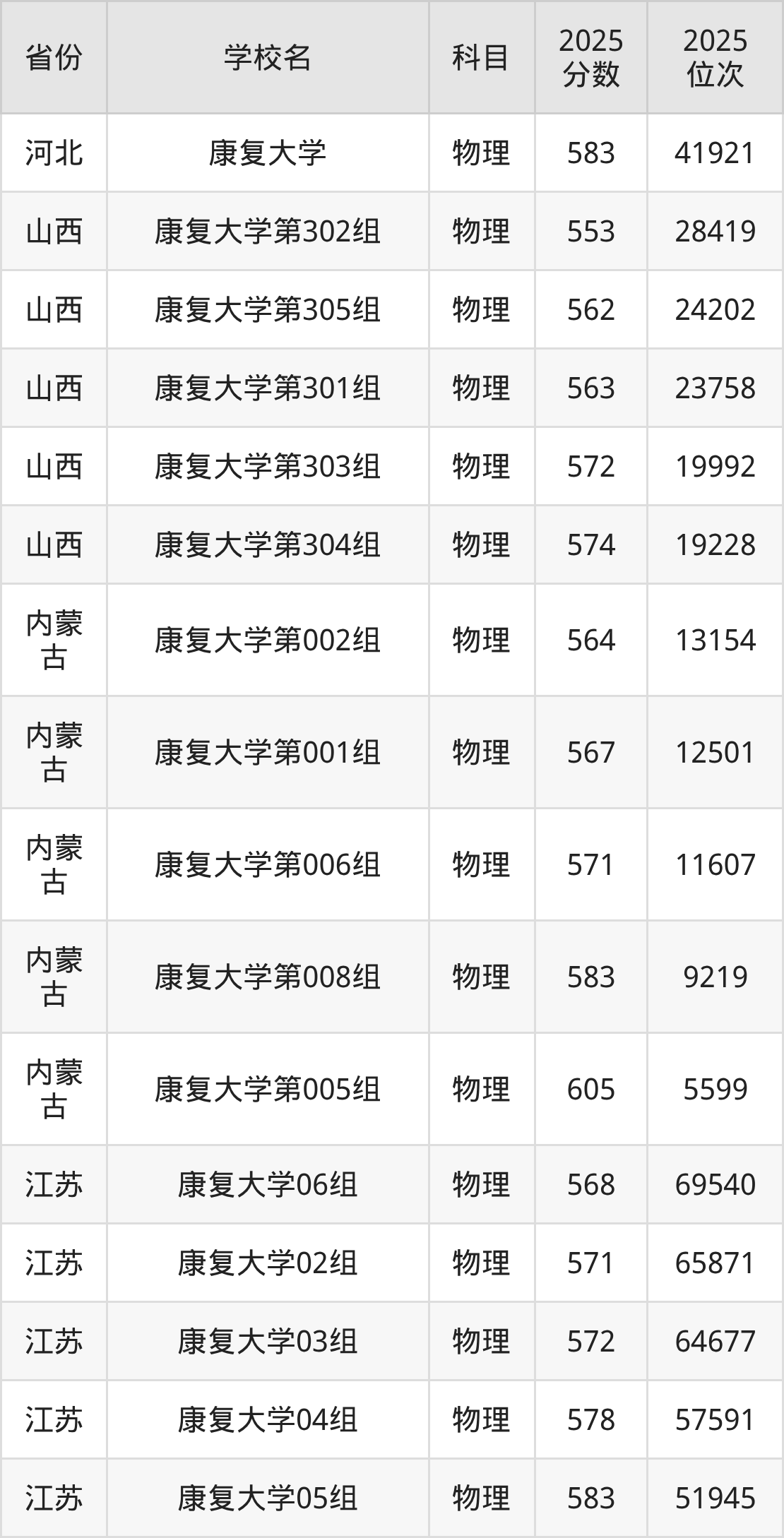 下面是康复大学2025年录取分数线各省汇总,一起来了解下吧。