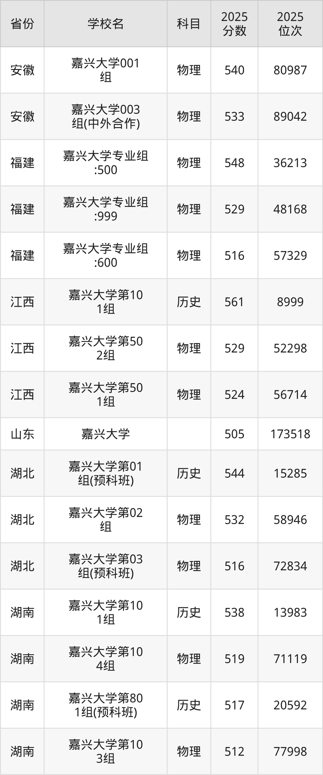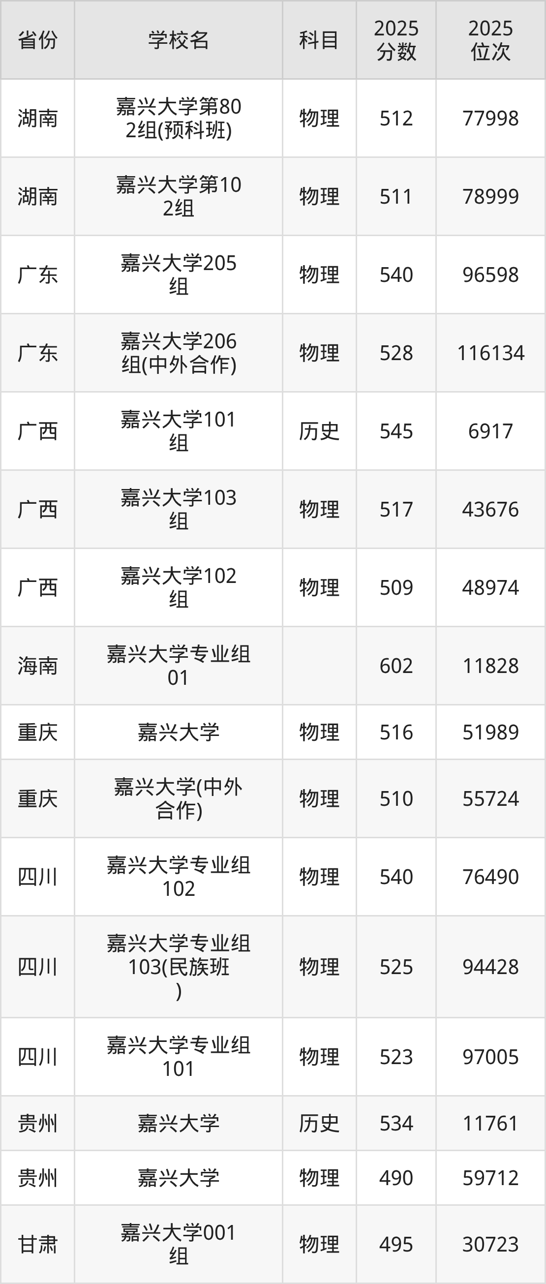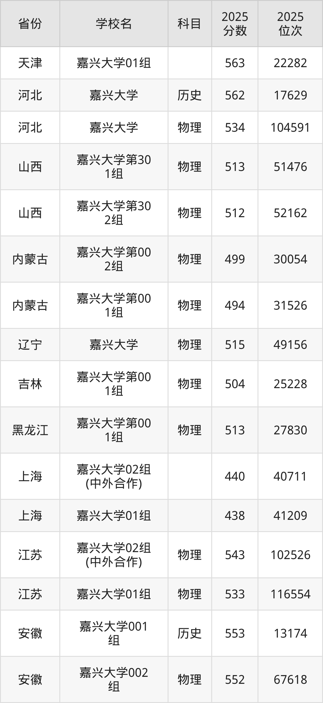 下面是嘉兴大学2025年录取分数线各省汇总,一起来了解下吧。