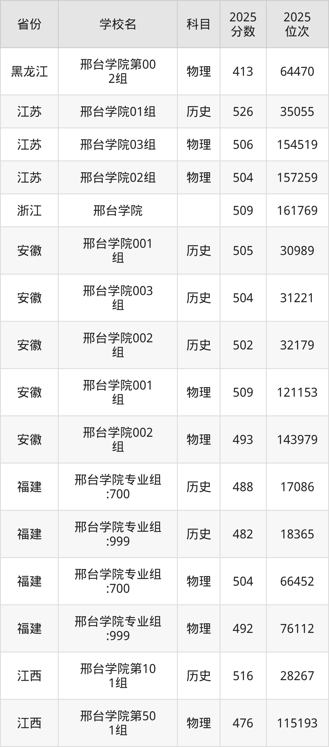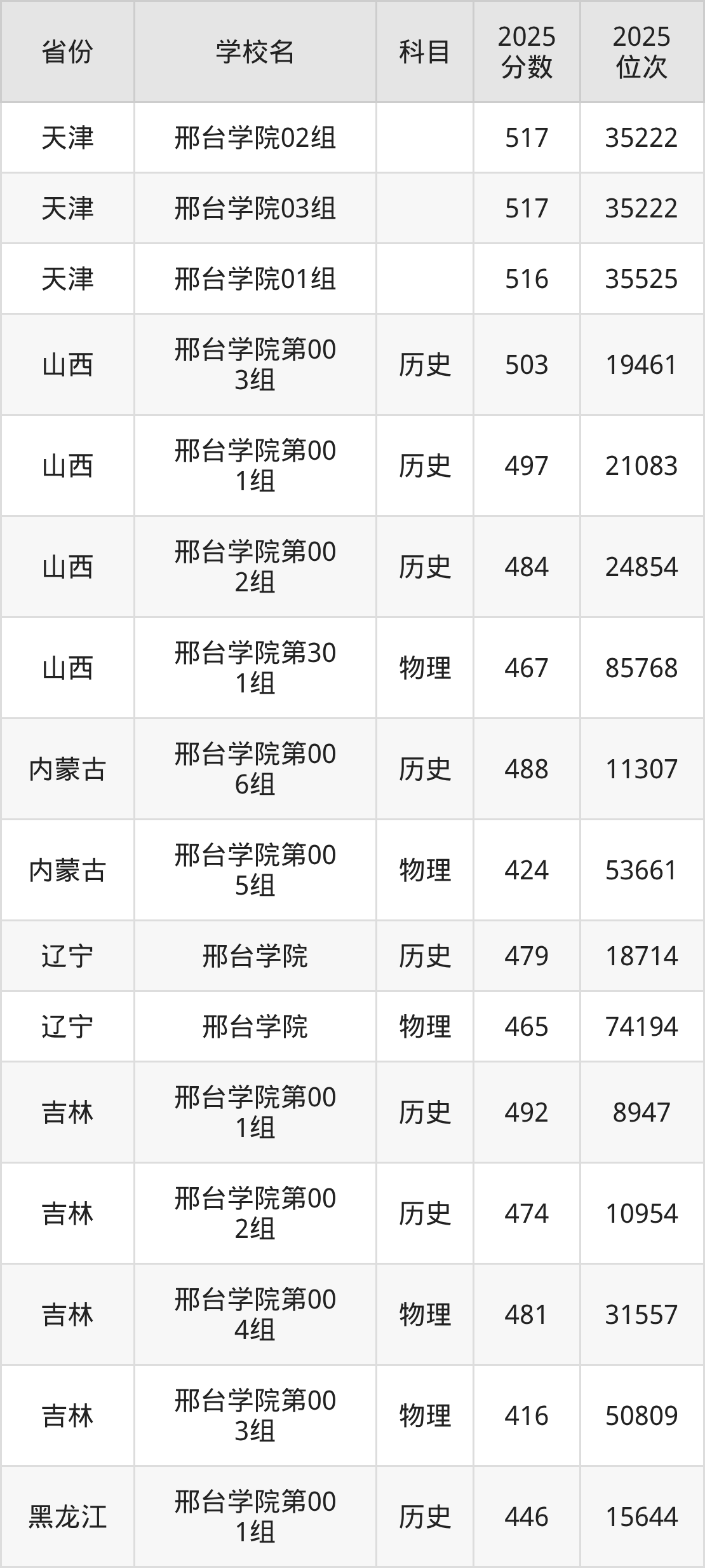 2025年邢台学院历史类最低分512分(42421名)、物理类最低分499分(162246名)。