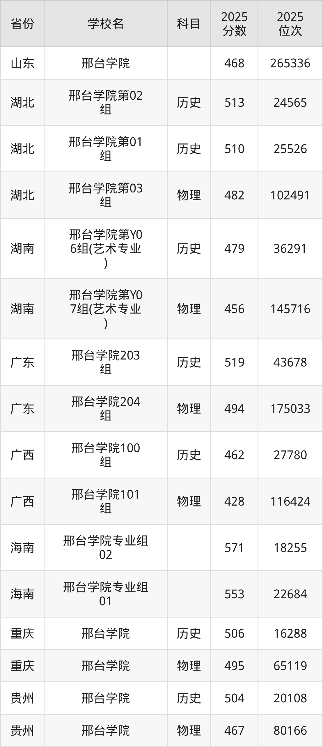 下面是邢台学院2025年录取分数线各省汇总,一起来了解下吧。